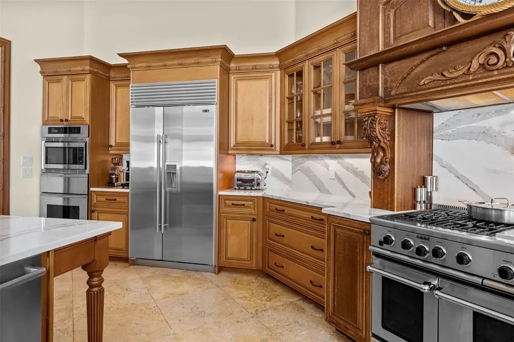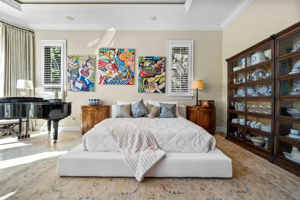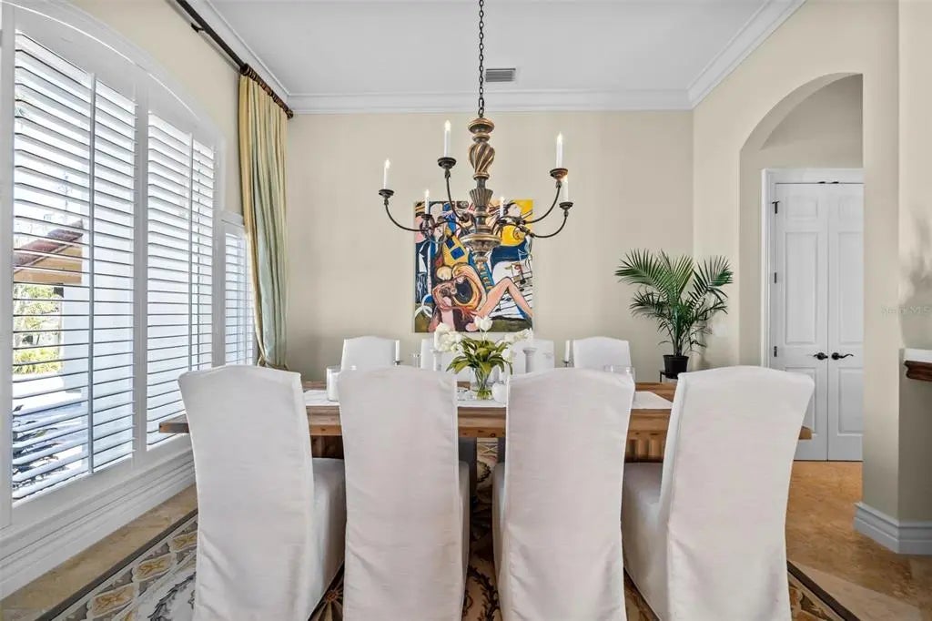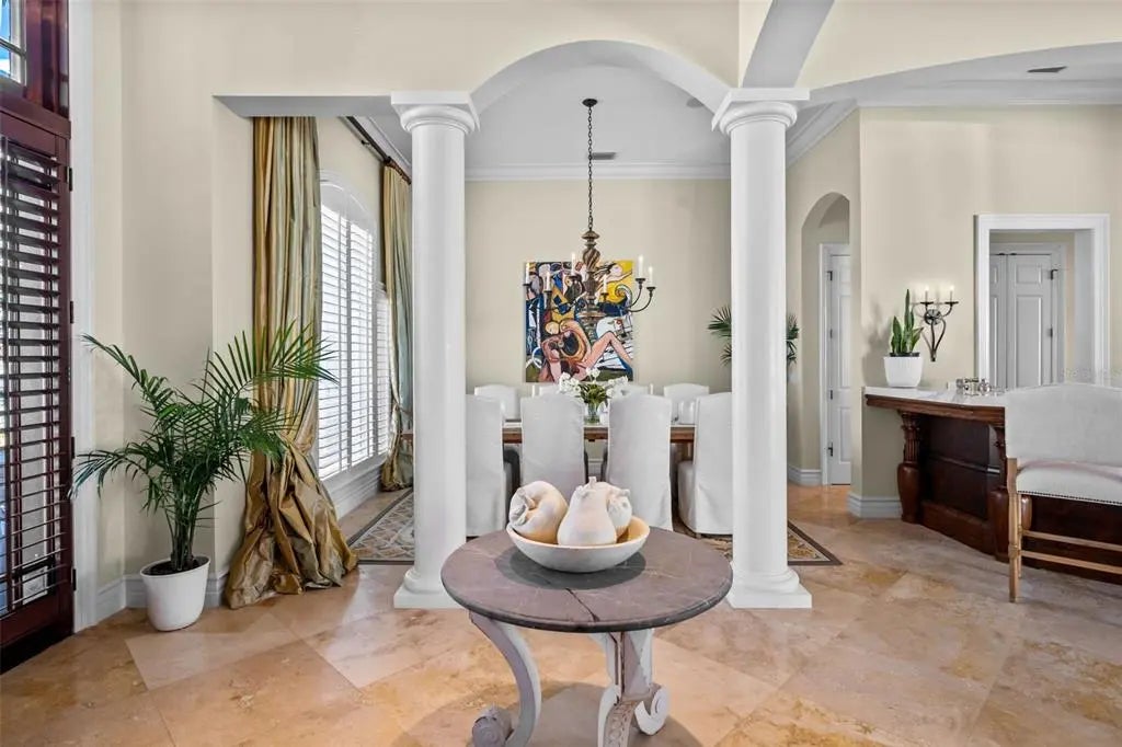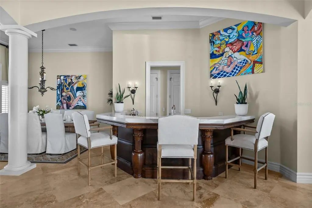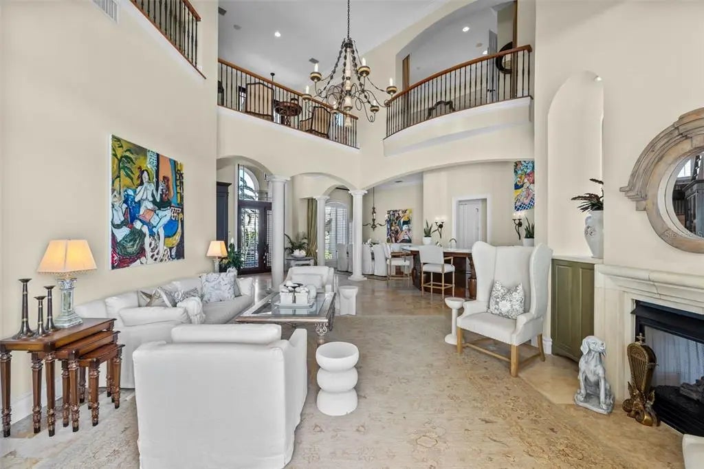 Presenting a distinguished waterfront estate located in Sarasota’s premier bayfront community, Harbor Acres, widely regarded as the city’s most coveted neighborhood. Perfectly situated on a protected deep-water boat basin, this property offers immediate access to Sarasota Bay with the added benefit of a boat dock and lift on calm waters-ideal for larger vessels. With prized southern rear exposure, the home is bathed in natural light throughout the day, while capturing glowing sunsets across the water — a rare and highly desirable feature for waterfront living. The thoughtfully designed 4-bedroom, 6 bath floor plan offers exceptional flexibility and privacy, with distinct guest wings that function almost as private suites — ideal for hosting extended family, visiting friends, or even live-in arrangements without sacrificing personal space. The seamless flow between formal and casual living areas makes the home equally suited for elegant entertaining or relaxed everyday living. At the heart of the home, the chef’s kitchen features beautiful quartz countertops, island, abundant cabinetry, and premium appliances, opening effortlessly to the family room and outdoor living areas. A striking double-sided gas fireplace creates ambiance between key gathering spaces, enhancing both intimate evenings and larger gatherings. Enjoy the rare luxury of choosing between two primary suites. Both primary suites are serene retreats offering generous proportions, tranquil water views, and a spacious walk-in closets with custom built-ins designed for optimal organization. The spa-inspired baths provides a luxurious escape at the end of the day. Outdoor living is where this property truly shines. A fully equipped summer kitchen anchors the covered lanai, creating the perfect setting for waterfront dining and entertaining. The infinity edge pool, spa and outdoor lounge areas overlook the wide boat basin, where you can watch dolphins pass and boats glide by — all from the comfort of your own backyard.
