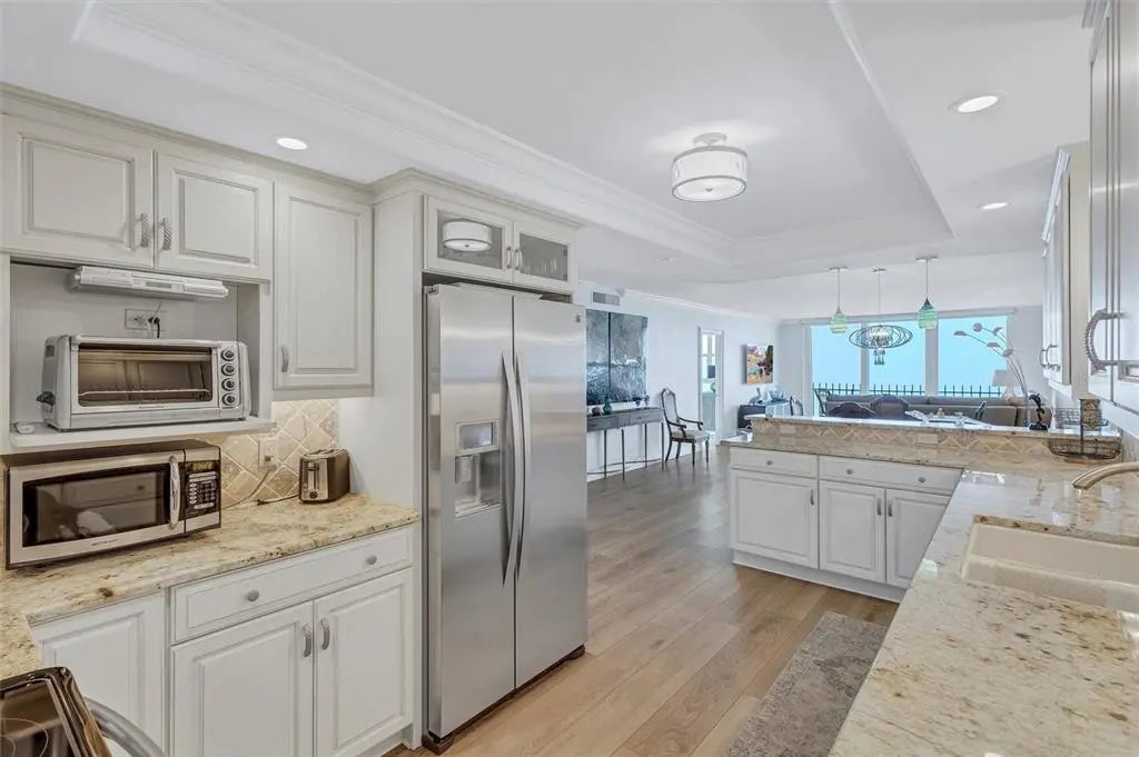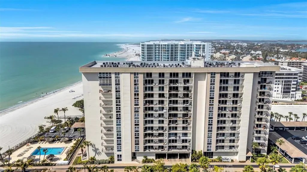 There are places you visit, and then there are places that quietly claim you. This highly perched oasis at Lido Beach Club is unmistakably the latter. Set directly on the Gulf of America, this beautifully reimagined two-bedroom, two-bath residence offers 1,534 square feet of refined coastal living where the presence of the water becomes part of everyday life. Both Bedrooms, plus the large living space all share the same spectacular gulf panoramic views. From the moment you step inside, natural light streams through hurricane-impact windows and sliders, guiding your eye straight to the open horizon. Two private lanais overlook uninterrupted gulf views, offering a front-row perspective of changing skies, passing sailboats, and evenings defined by vivid sunsets over open water. The property has been completely remodeled with thoughtful restraint, blending clean, contemporary finishes with a relaxed coastal sensibility. Offered furnished, the residence feels immediately welcoming and move-in ready, allowing a new owner to begin enjoying the space from day one. The interiors are calm, intentional, and inviting, equally suited for quiet mornings, effortless entertaining, or extended stays throughout the season. Beyond its appeal as a personal retreat, the property has demonstrated strong rental performance, having enjoyed two successful years of past rentals. This history provides flexibility for buyers who value both lifestyle and income potential, while still preserving the home’s peaceful, residential feel. What truly sets this residence apart is the experience beyond the walls. Walk directly from the building onto soft welcoming sand and into a daily rhythm shaped by sunshine, sea air, and long shoreline walks. Enjoy full amenities' such as glistening pool, pickleball court, gym and more. For those arriving from colder climates, this is an immediate and tangible contrast to winter routines, coats, and crowds. For local buyers, it represents a rare opportunity to own a true gulf-front home with direct beach access in one of Sarasota’s most established and sought-after beachfront communities. Whether enjoyed as a primary residence, a seasonal escape, or a refined coastal retreat with proven rental appeal, Residence 1001 offers a lifestyle defined by light, location, and connection to the water. This is more than a condominium. It is a place where days slow down, perspectives shift, and the Gulf is always just beyond the glass. Click above to see full website along with a very descriptive video of the unit.