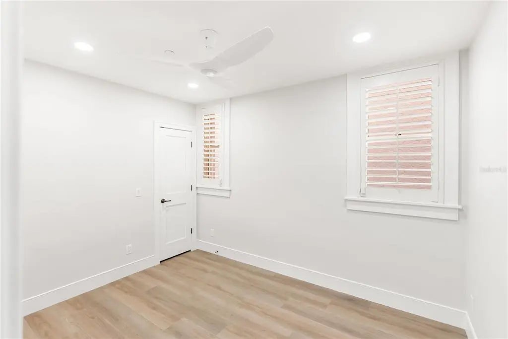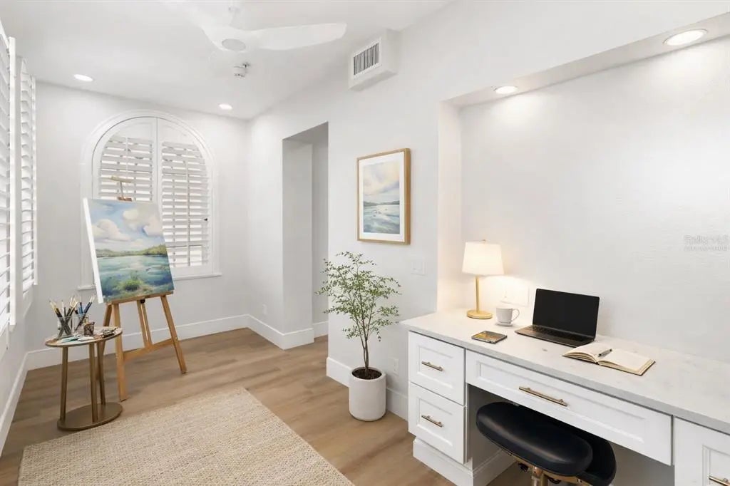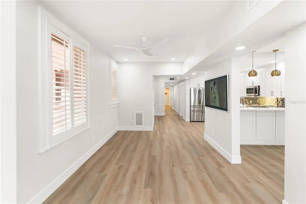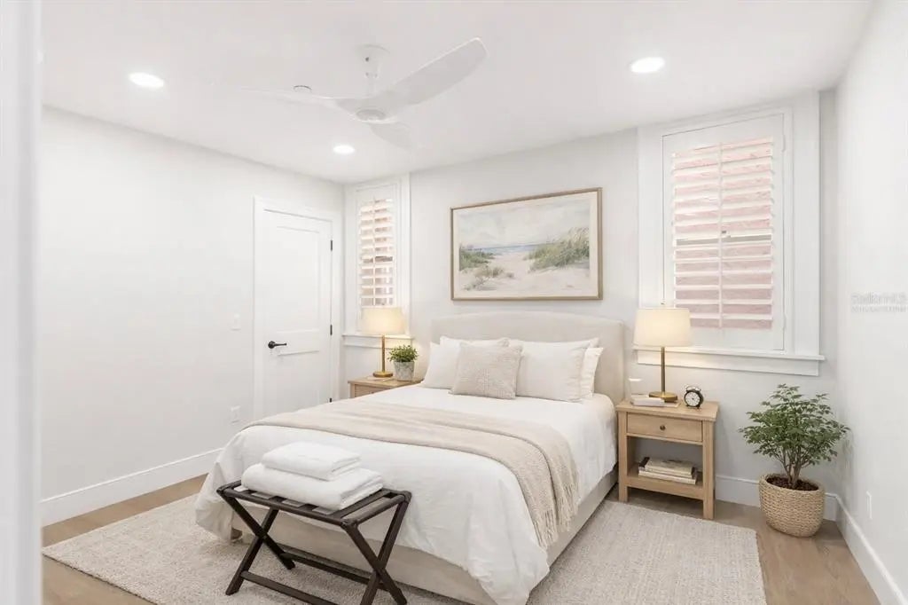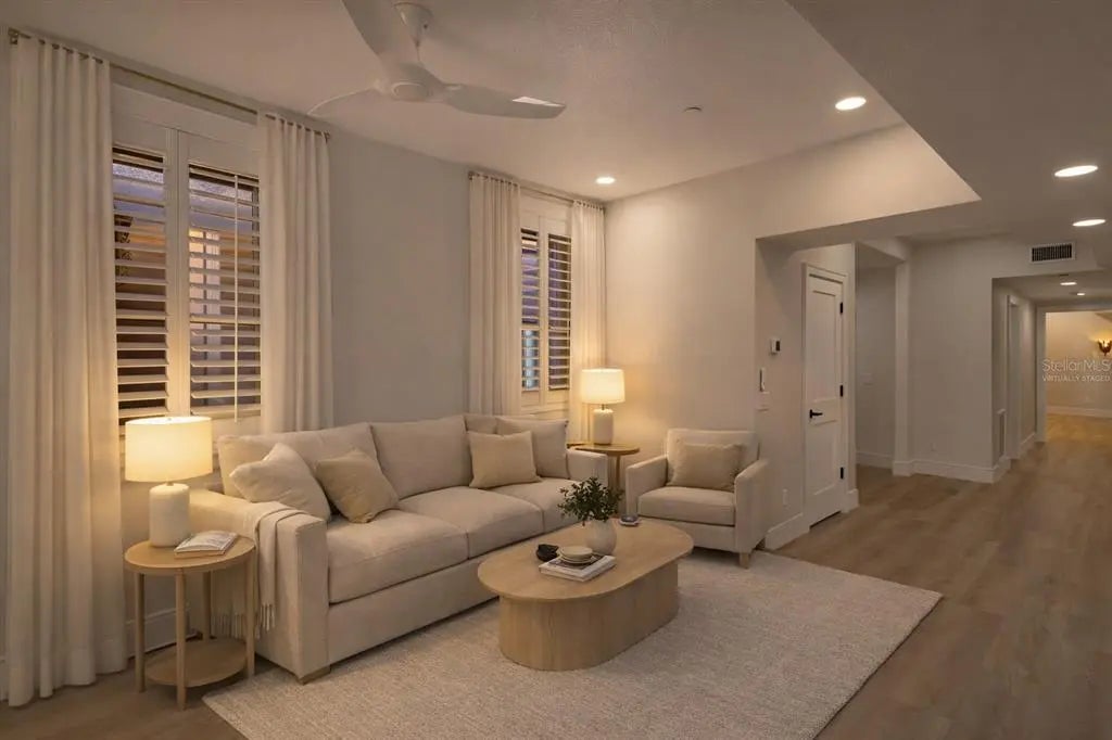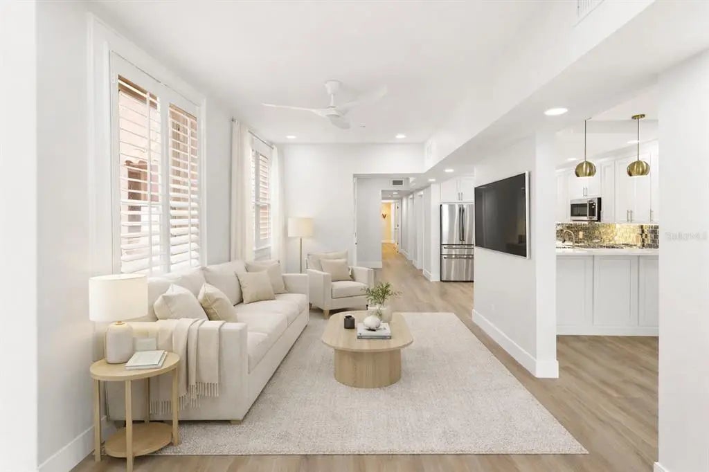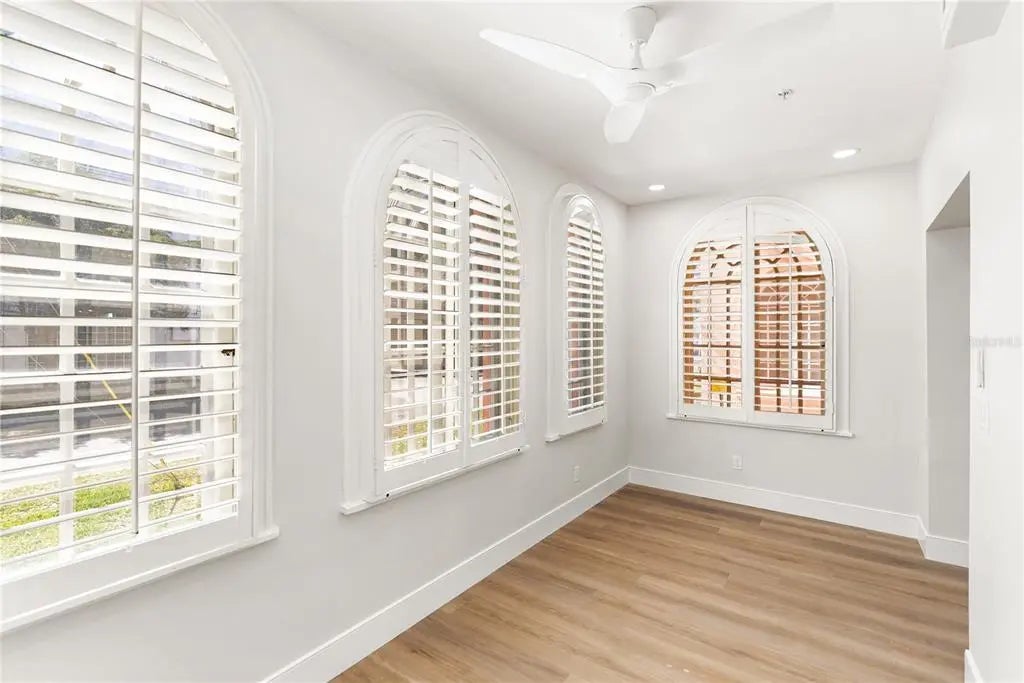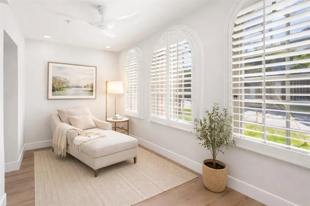 One or more photo(s) has been virtually staged. Tucked inside the historic 1924 Frances Carlton on Palm Avenue, this fully reimagined residence offers something rarely found in downtown Sarasota, the character of a vintage building paired with the comfort of a completely rebuilt interior. Created by combining two residences, the home spans almost 1,600 square feet and lives more like a private apartment than a typical condominium. High ceilings, original arched windows, and defined rooms preserve the architectural charm, while a comprehensive renovation brings the home entirely into the present. You enter directly into a generous, open kitchen, an unexpected feature in a building of this era, designed for daily living and gathering rather than passing through. Custom cabinetry, stone surfaces, Café appliances, and thoughtful lighting create a space that is both refined and welcoming. Plantation shutters throughout soften the natural light while maintaining privacy. The living areas flow naturally toward the sunroom overlooking Palm Avenue, where warm southwest afternoon light fills the space. At the opposite end of the home, the primary suite offers a different experience entirely. Positioned at the rear of the residence, it extends into a second enclosed sunroom overlooking a small garden courtyard. Accessible through the bedroom, this space becomes a quiet retreat, ideal for morning coffee, reading, or a peaceful workspace. The renovation extends well beyond cosmetics. Flooring, kitchen, baths, electrical, plumbing, lighting, and finishes have all been rebuilt, complemented by two new air-conditioning systems and a tankless water heater. The result preserves the building’s architectural soul while providing the reliability of a much newer home. The residence includes in-unit laundry, two assigned secured parking spaces, and access to the community pool within an intimate building of twenty residences. From here, downtown Sarasota is part of everyday life. Florida Studio Theatre, Sarasota Opera, restaurants, cafés, and evening drinks are just one or two blocks away, with the Bayfront and marina a short walk beyond. For those seeking amenities and high-rise living, downtown offers many options. For those seeking charm, history, walkability, and a home that feels genuinely unique, opportunities like this are very rare.