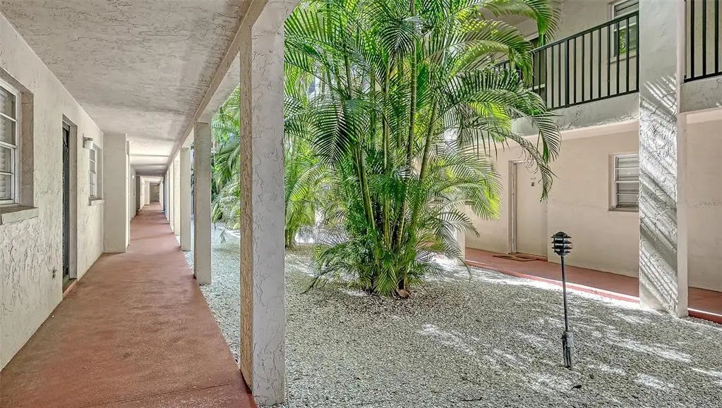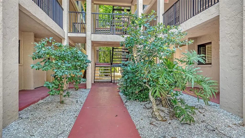 West of the Trail location perfect for going to the beach or Downtown. Perfect for a winter getaway or full time living. 2nd floor unit with enclosed patio. Beautiful gardens and trees surround the property. 2 bedroom 1 bath (room for another 1/2 bath), dual sinks, on-site laundry, elevator and pets are welcome! A Washer & Dryer may be installed in the unit.One designated parking spot and guest parking available. Water and basic cable included.