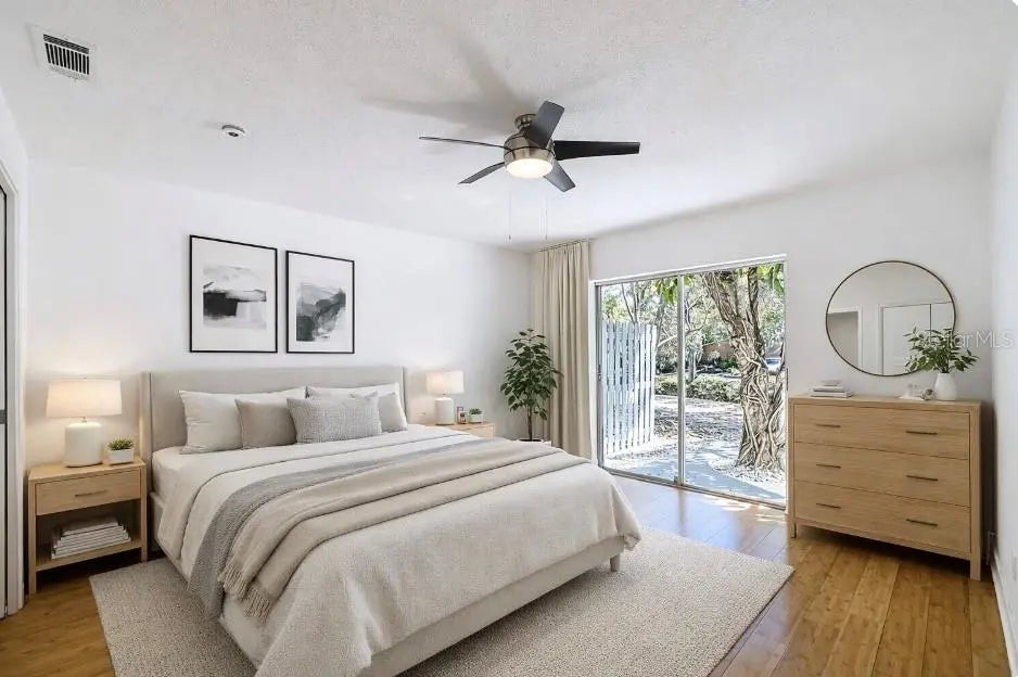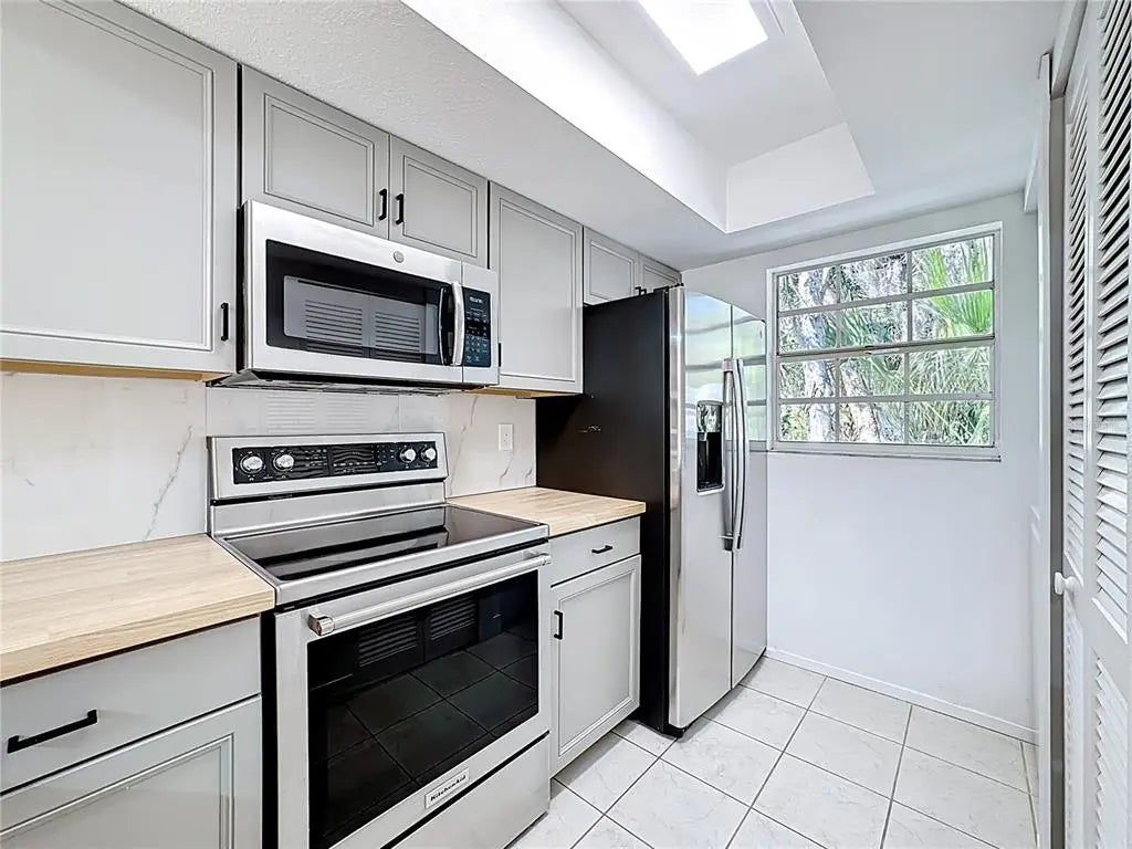 Move-in ready and completely renovated, this stunning 2-bedroom, 2-bathroom Sarasota condo is located just minutes from the vibrant Downtown Sarasota business district, shopping, dining, and cultural attractions and about 5 miles from Lido Key, St. Armands, and Siesta Key. No detail has been overlooked in this full renovation. The home features a brand-new A/C system with a 10-year warranty, freshly cleaned and sanitized ductwork, new vents, and a new water heater. Electrical updates include new outlets, switches, and modern light fixtures throughout, including updated outdoor lighting. The beautifully redesigned kitchen offers new cabinetry, butcher block countertops, a large pantry, and brand-new stainless steel appliances, including a refrigerator and dishwasher. A brand-new washer and dryer are also included for added convenience. Both bathrooms have been completely remodeled with new showers featuring glass doors, new vanities, and new toilets, creating a clean, modern feel. Additional upgrades include removal of popcorn ceilings (retextured for a fresh finish), new baseboards, fresh neutral interior paint throughout, and painted back patio concrete. The freshly painted front door is equipped with a smart fingerprint lock system, offering modern security and convenience. Flooring features ceramic tile and bamboo flooring throughout. This fully updated condo combines contemporary upgrades with an unbeatable Sarasota location — perfect for a primary residence, seasonal retreat, or investment opportunity.