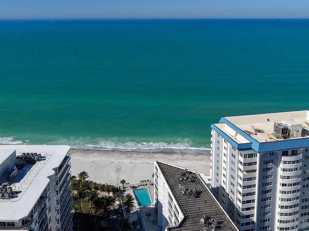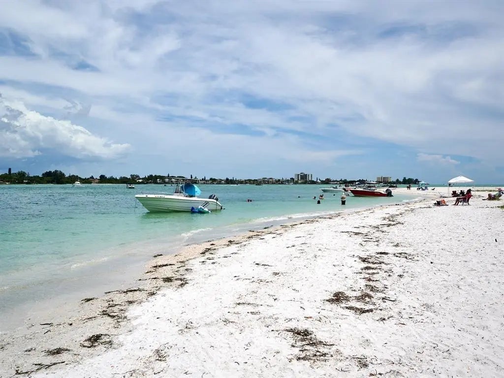 One or more photo(s) has been virtually staged. tranquil atmosphere with immediate access to the shoreline. Plus, you’re just moments from the vibrant shops and restaurants of St. Armands Circle, making premier dining and shopping always within easy reach. This spacious 2-bedroom, 2-bath, 1,280-square-foot residence is offered turnkey furnished in relaxed island style. Hand-painted artisan touches infuse every space with authentic character, while tranquil surroundings set the tone for effortless beachside living, and impact-rated windows and sliding glass doors provide peace of mind—delivering durability, comfort, and style. Relax on your fully enclosed balcony, where the sunrise colors the sky over South Lido Park and Preserve, and gentle breezes complete peaceful sunsets over subtle Gulf views. Thoughtful touches enhance every corner of this residence, from ceramic tile flooring and classic plantation shutters to mirrored walls, space-saving pocket doors, and abundant closet space, including a cedar-lined option. The eat-in kitchen blends function and style, featuring crisp white raised-panel cabinetry with glass display shelving and a coordinating tiled backsplash. A custom ceiling and modern stainless-steel appliances bring a fresh update to the space, while a closet pantry adds valuable storage. Bright walls infuse a lively atmosphere, and a convenient pass-through seamlessly connects the kitchen to the main living area for easy entertaining. The great room has dedicated living and dining spaces that open effortlessly to the balcony, adding nearly 100 square feet of indoor-outdoor living for relaxed gatherings or quiet moments by the coast. The Gulf-side primary bedroom is a bright retreat, featuring an ensuite bath, dual double closets, and custom tilework inspired by the colors of a beach sunset. Designer ceiling fan, sun-kissed walls in cheerful tones, and direct balcony access through sliding glass doors complete this inviting sanctuary. Completing the interior is a comfortable secondary bedroom with a walk-in closet and a guest bath adorned in the same uplifting finishes found throughout the home. Generous closet space offers versatility to meet your needs, with the option to incorporate a private laundry for added comfort and convenience. The residence also includes deeded storage and assigned one-car garage parking. Lido Harbor Towers is nestled directly on the sands of Lido Key, just south of the Ritz Carlton Beach Club. Wake each day to the fresh scent of sea air and enjoy sun-soaked moments by the seaside pool, expansive sun deck, and direct beach access. This charming high-rise features inviting amenities, including a club room with a full kitchen for gatherings, a beautifully renovated lobby, common fourth-floor laundry, BBQ area, bike and kayak storage, guest parking, and lush tropical landscaping with paver brick pathways. Ideally situated at the coveted south end of Lido Key, you’re moments from both the Gulf of Mexico and the tranquil bay waters of Ted Sperling Park—a 100-acre haven cherished by boaters, kayakers, and fishing enthusiasts alike. Lido Beach awaits with its white sugar sands and azure tides, while the energy of downtown Sarasota is only minutes away. At Lido Harbor Towers, every day feels like a vacation getaway.