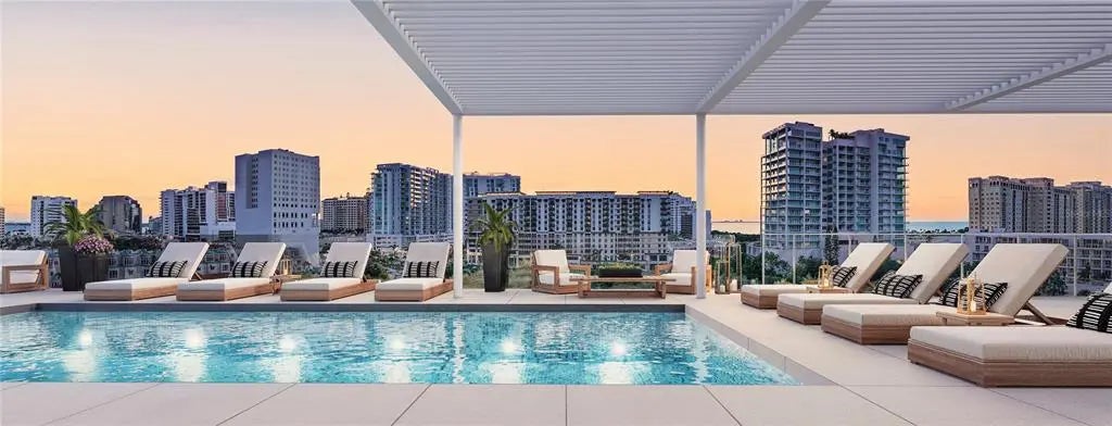 Under Construction. Experience the unparalleled sophistication and serenity of The Gallery’s luxurious south-facing, single-level penthouse, boasting 3 bedrooms and 3.5 baths across 1,692 square feet of living space (1,909 total SF), soaring 14’ ceilings with full-height windows, and a 27’ grand terrace with a sleek glass panel railing. The designer integrated kitchen features imported Italian flat-panel cabinetry, quartz countertops, stainless steel appliances, and an extra-long island offering ideal prep space and additional seating. Creating additional privacy, you are greeted with a vestibule to withhold the view of the primary bedroom that features a spacious walk-in closet, floating double vanity, and glass enclosed walk-in shower. Top-tier amenities include a spacious west-facing rooftop pool terrace to soak in the sun's brilliance, social lounge, and a vast two-room Fitness Center and Yoga Studio equipped with cutting-edge cardio and strength-training equipment. Perfectly located on Downtown Sarasota’s west end, above floodplain at 4th & Cocoanut, TheGallerySarasota offers a vibrant, walkable lifestyle with effortless access to premier restaurants, shopping, cultural venues, and the breathtaking 53-acre Bay Park. Amenities include a spacious west-facing rooftop pool terrace with summer kitchen, social lounge, and bay views, along with a vast two-room Fitness Center and Yoga Studio equipped with cutting-edge cardio and strength-training equipment. Schedule a private hardhat and showroom tour to receive an in-depth look into what we have planned for the property and surrounding area. Our showroom is located at 625 S Orange Sarasota, FL 34236 (retail space at Orange Club).