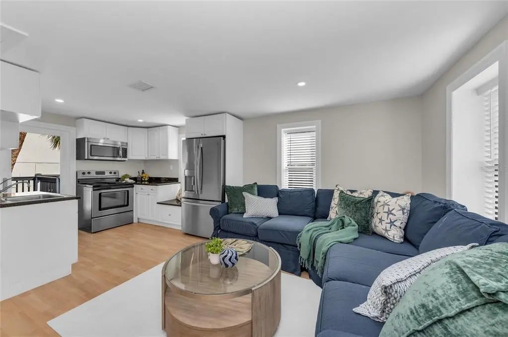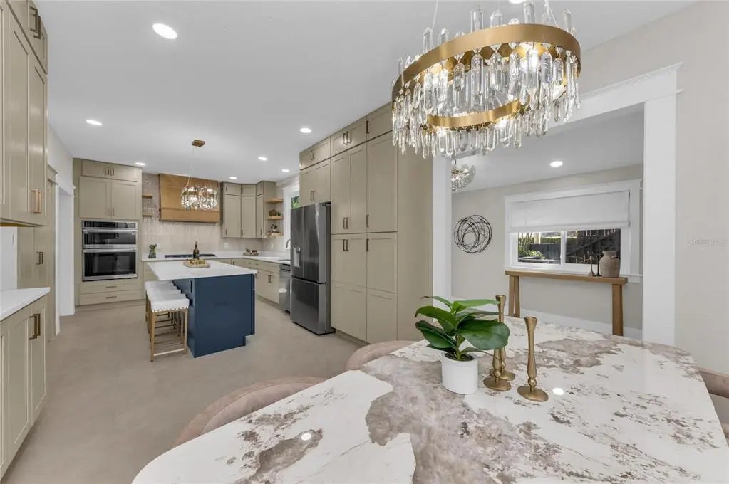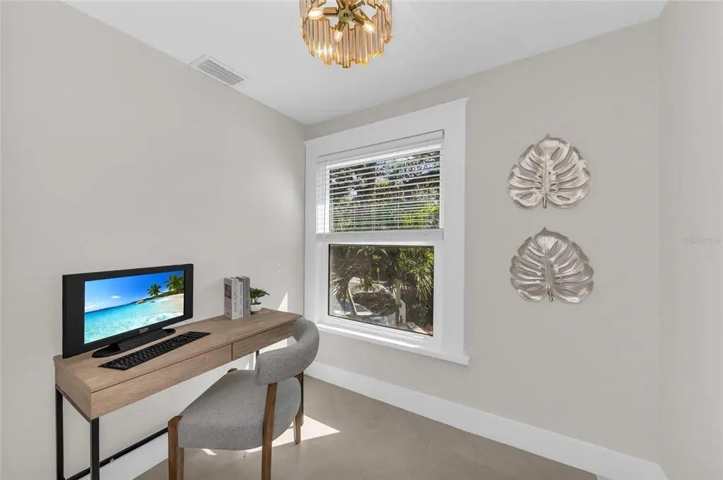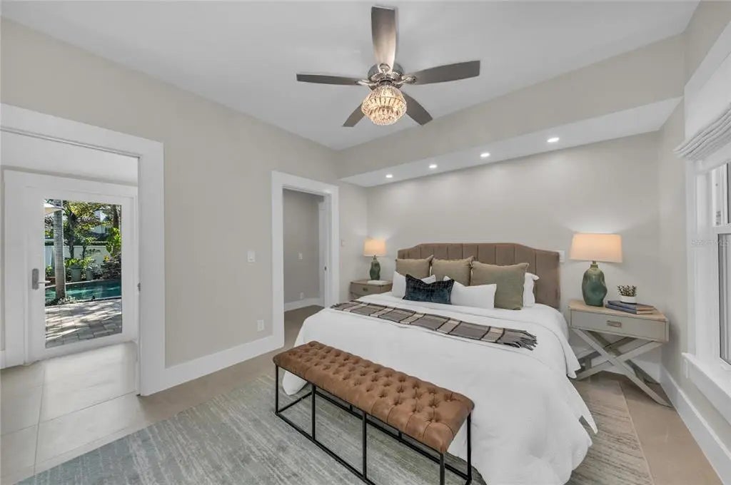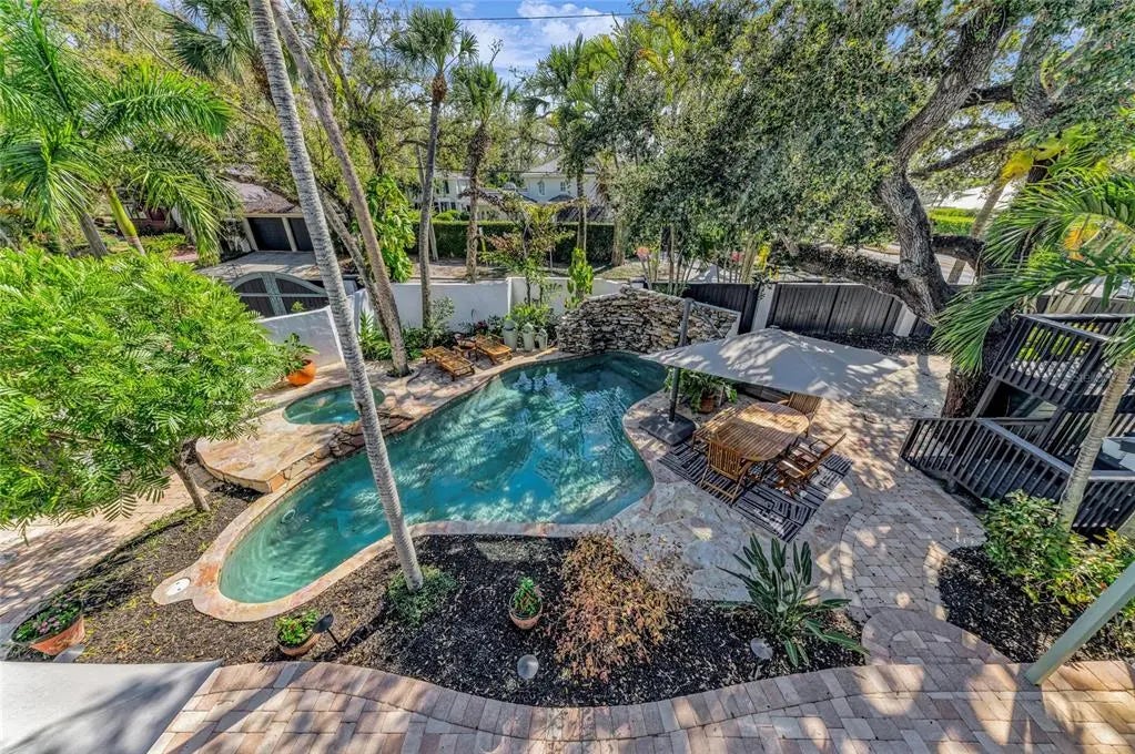 Located in Sarasota’s established West of Trail neighborhood, this gated and fenced 1920 Craftsman residence offers a rare double lot and a guest cottage. Originally constructed in 1920 and comprehensively renovated in 2025 and 2026, the property preserves its architectural character while integrating modern systems, finishes and upgrades including all impact windows and doors. Spanning 3,609 total square feet, the estate is designed for privacy and flexibility. The main residence includes three bedrooms and two and one-half baths. The primary suite is positioned on the main level with direct access to the pool and courtyard, along with a spacious walk-in closet. Large-format porcelain block flooring extends throughout, complemented by updated lighting and professionally curated design elements introduced during the full vintage renovation. The kitchen supports both daily living and entertaining, anchored by a substantial island with quartz countertops, new appliances and a natural gas five-burner range. A dining nook overlooks the pool and courtyard, while adjacent living and lounge areas create seamless gathering spaces. Outdoor living centers around a private courtyard featuring a heated saltwater pool and spa with rock fountain feature, outdoor kitchen, multiple balconies and sitting areas, a sweeping front porch and the landscape lighting is strategically set among the mature Florida landscaping. A custom-built treehouse fort and chicken coop contribute additional character to the grounds. A detached, air-conditioned two-car garage includes a self-contained guest cottage above with one bedroom, office and one bath, with additional covered parking offering flexibility for extended family, guests or potential rental income. Conveniently located near Hillview Street dining and shopping, Morton’s market, the bayfront, Downtown Sarasota and Southside Elementary School, this property combines preserved Craftsman architecture with modern livability in one of Sarasota’s most desirable in-town locations.