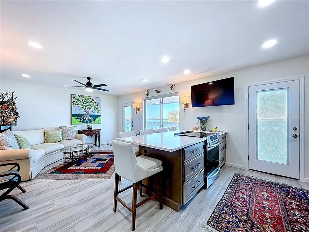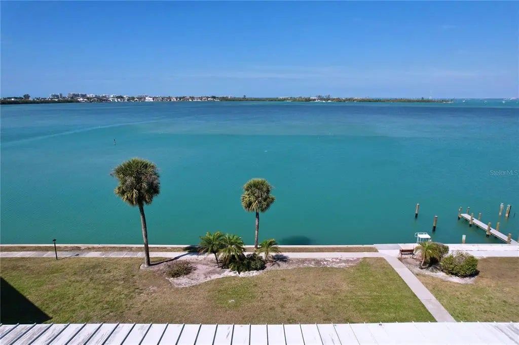 Direct bayfront 2BR/1.5BA third-floor condo at Sarasota Harbor West with sweeping panoramic views of Sarasota Bay and spectacular western sunsets. The open-concept kitchen and living area have been completely renovated to perfection — designer finishes, high-end appointments, and an open layout that frames panoramic views from every angle, presenting like the pages of an architectural magazine with the bay as its backdrop. This meticulously maintained residence offers a rare front-row vantage point over the bay and includes a same-floor private storage room. The unit sustained no hurricane damage, providing exceptional peace of mind. The third-floor elevation enhances privacy, natural light, and breezes, and offers some of the most commanding water views in the entire community. Sarasota Harbor West is a premier 55+ maintenance-free bayfront community. Amenities include a waterfront clubhouse with full kitchen, heated lap pool, shuffleboard courts, kayak storage, bicycle storage, and deep-water boat slips up to 30 ft available for purchase at a one-time fee. The boat basin sits in a naturally protected section of the bay, offering calm water and easy access to Big Pass and the Gulf. HOA fees cover on-site property manager, building exterior, grounds, exterior pest control, building insurance, pool maintenance, water, sewer, trash, and cable. One covered parking space included; ample guest parking available. Rentals permitted after one year of ownership. Pets not permitted except with valid service or emotional-support animal documentation. Located directly across from Sarasota Yacht Club, with immediate access to St. Armands Circle, Lido Beach, and downtown Sarasota. This is one of Sarasota’s most walkable waterfront locations, with Sarasota Yacht Club, dining, boutiques, beaches, and cultural venues all just minutes from your door. A rare opportunity for true direct bayfront living in one of Sarasota's most sought-after waterfront communities. **Take a look at the virtual tour. **