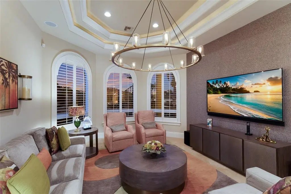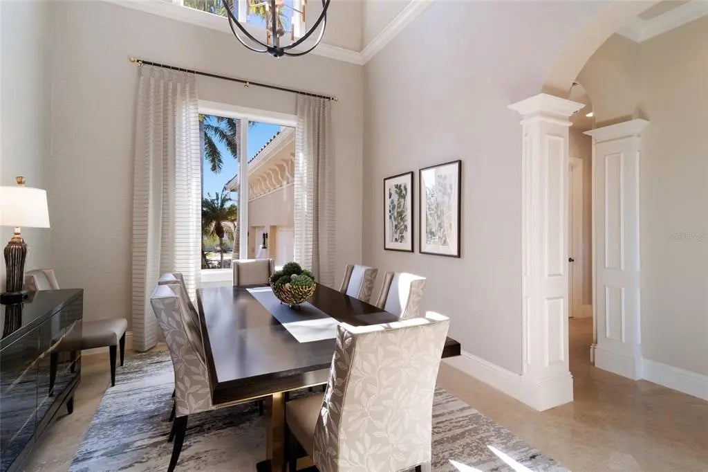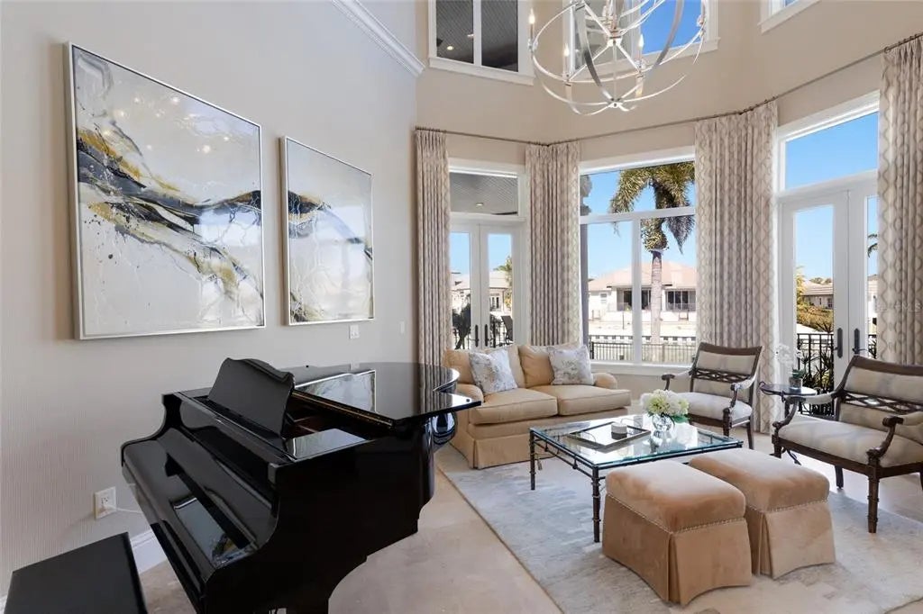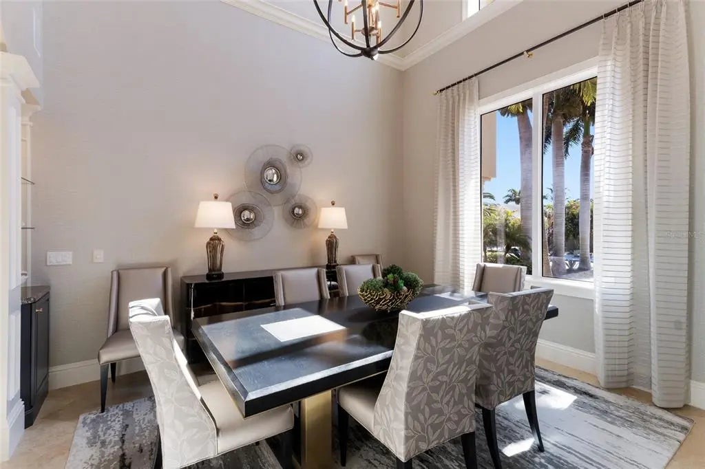 Remarkable, elevated waterfront residence ideally positioned in the prestigious Bird Key neighborhood. Custom built in 2005 by renowned builder Steve Murray of Murray Homes, it reflects exceptional craftsmanship, structural integrity, and enduring quality. Purposefully designed to maximize its setting on the wider Dolphin waterway, just a few homes from open Sarasota Bay, the property offers both protected dockage and quick bay access. With undeniable presence, the home stands tall and commanding, defined by strong architectural lines. A long, paved driveway, framed by six striking Royal Palms, enhances the sense of scale on arrival. Inside, soaring 23-foot ceilings immediately reveal the home’s true volume. The thoughtfully designed floor plan allows the residence to live grandly while still offering intimate spaces for everyday comfort. The chef’s kitchen, with breakfast bar and center island, flows seamlessly into the family room and informal dining area. A formal living room with decorative natural stone fireplace opens through French doors to the water facing terrace, while the formal dining room balances its dramatic ceiling height with an inviting and intimate ambiance. The first-floor primary suite offers terrace access, an en-suite bath, large walk-in closet, coffee bar, and beverage refrigerator. A solid wooden staircase leads upstairs to a second primary suite featuring dual walk-in closets, en-suite bath, coffee bar, beverage refrigerator, and a private water-facing terrace perfect for sunrise views over the canal and bay. An additional en-suite guest bedroom is privately situated upstairs. A fourth bedroom, currently used as an office with built-ins and a Murphy bed, opens through French doors to a waterfront terrace. Outdoor living is equally impressive in both scale and design with a fully equipped outdoor kitchen, generous covered seating areas, fire pit, and a 30-foot pool with spillover spa and programmable lighting. The dock features 20,000 lb. and 5,000 lb. boat lifts with direct access to Sarasota Bay via the wide Dolphin waterway. The property includes two full two-car garages with direct interior access. With the added benefit of a new in 2025 roof, this residence is built strong, elevated, and designed to impress, combining commanding architecture with a prime boating location. Living on Bird Key places you minutes from downtown Sarasota, St. Armands Circle, Lido Beach, and the soon-to-reopen Bird Key Yacht Club, anticipated in 2026 as one of Sarasota’s premier destinations for boating, tennis, dining, and social life.