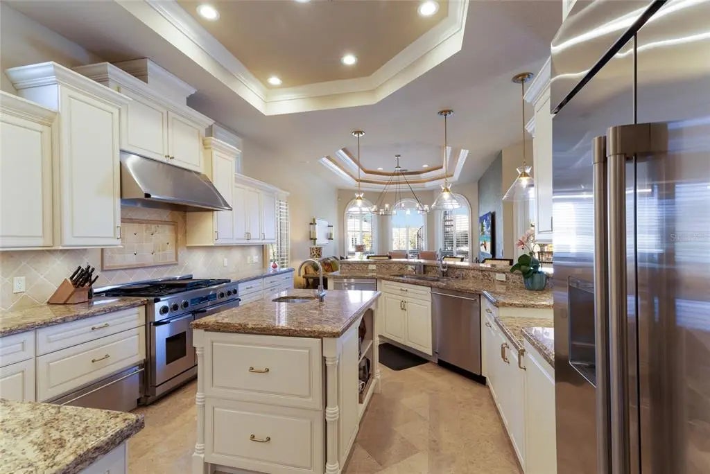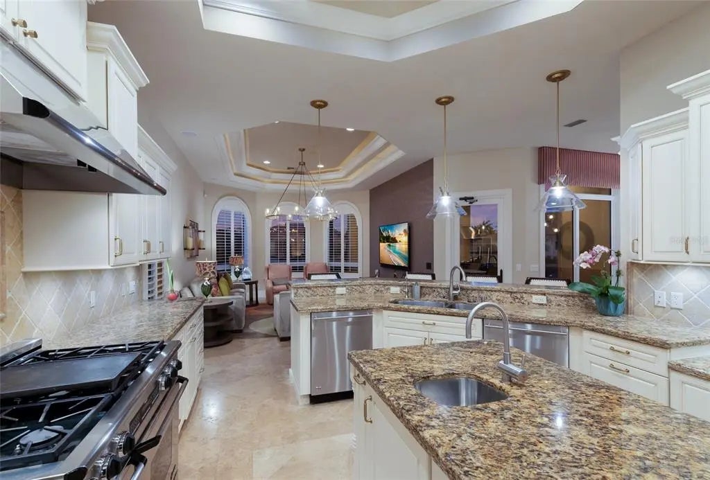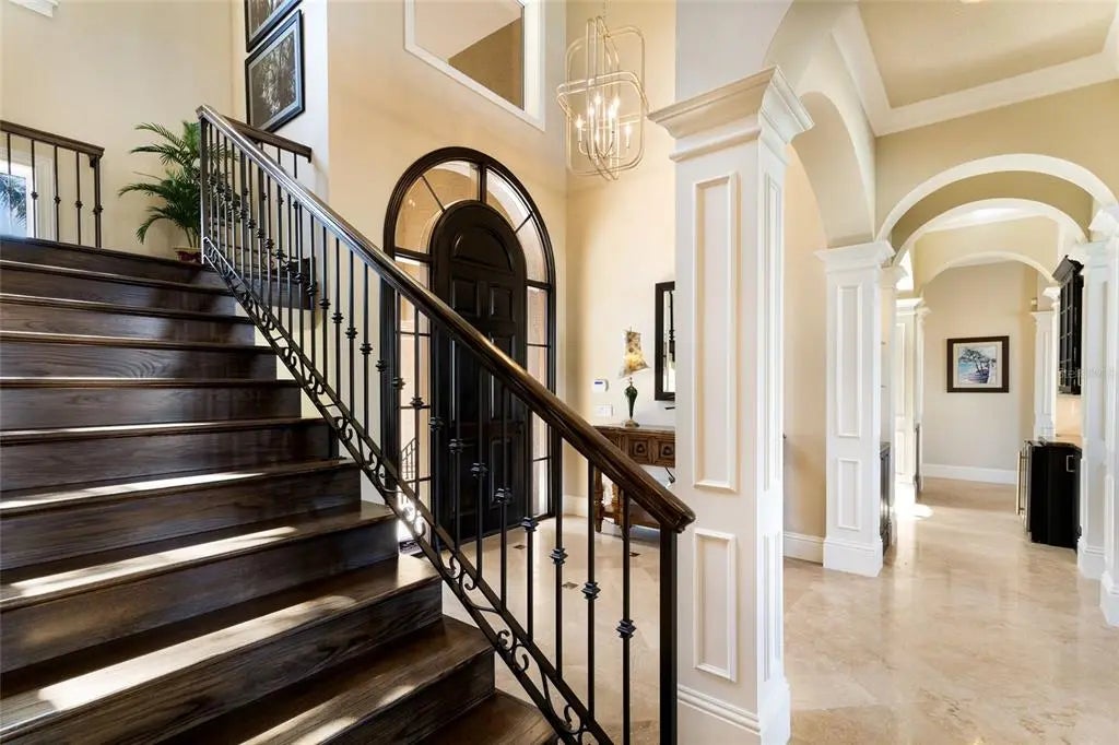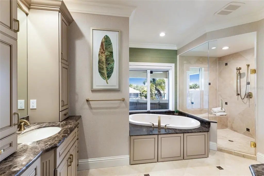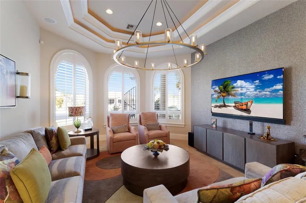 Remarkable, elevated waterfront residence ideally positioned in the prestigious Bird Key neighborhood. Custom built in 2005 by renowned builder Steve Murray of Murray Homes, it reflects exceptional craftsmanship, structural integrity, and enduring quality. Purposefully designed to maximize its setting on the wider Dolphin waterway, just a few homes from open Sarasota Bay, the property offers both protected dockage and quick bay access. With undeniable presence, the home stands tall and commanding, defined by strong architectural lines. A long, paved driveway, framed by six striking Royal Palms, enhances the sense of scale on arrival. Inside, soaring 23-foot ceilings immediately reveal the home’s true volume. The thoughtfully designed floor plan allows the residence to live grandly while still offering intimate spaces for everyday comfort. The chef’s kitchen, with breakfast bar and center island, flows seamlessly into the family room and informal dining area. A formal living room with decorative natural stone fireplace opens through French doors to the water facing terrace, while the formal dining room balances its dramatic ceiling height with an inviting and intimate ambiance. The first-floor primary suite offers terrace access, an en-suite bath, large walk-in closet, coffee bar, and beverage refrigerator. A solid wooden staircase leads upstairs to a second primary suite featuring dual walk-in closets, en-suite bath, coffee bar, beverage refrigerator, and a private water-facing terrace perfect for sunrise views over the canal and bay. An additional en-suite guest bedroom is privately situated upstairs. A fourth bedroom, currently used as an office with built-ins and a Murphy bed, opens through French doors to a waterfront terrace. Outdoor living is equally impressive in both scale and design with a fully equipped outdoor kitchen, generous covered seating areas, fire pit, and a 30-foot pool with spillover spa and programmable lighting. The dock features 20,000 lb. and 5,000 lb. boat lifts with direct access to Sarasota Bay via the wide Dolphin waterway. The property includes two full two-car garages with direct interior access. With the added benefit of a new in 2025 roof, this residence is built strong, elevated, and designed to impress, combining commanding architecture with a prime boating location. Living on Bird Key places you minutes from downtown Sarasota, St. Armands Circle, Lido Beach, and the soon-to-reopen Bird Key Yacht Club, anticipated in 2026 as one of Sarasota’s premier destinations for boating, tennis, dining, and social life.