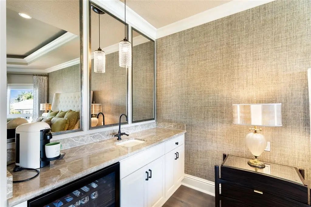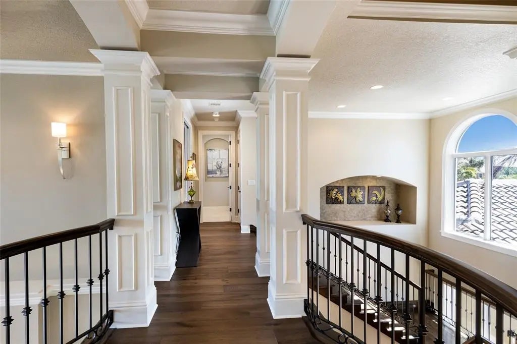 - Interior FeaturesBuilt-in Features, Cathedral Ceiling(s), Ceiling Fan(s), Crown Molding, Dry Bar, Eating Space In Kitchen, High Ceilings, Kitchen/Family Room Combo, Primary Bedroom Main Floor, PrimaryBedroom Upstairs, Solid Surface Counters, Split Bedroom, Thermostat, Tray Ceiling(s), Vaulted Ceiling(s), Walk-In Closet(s), Window Treatments