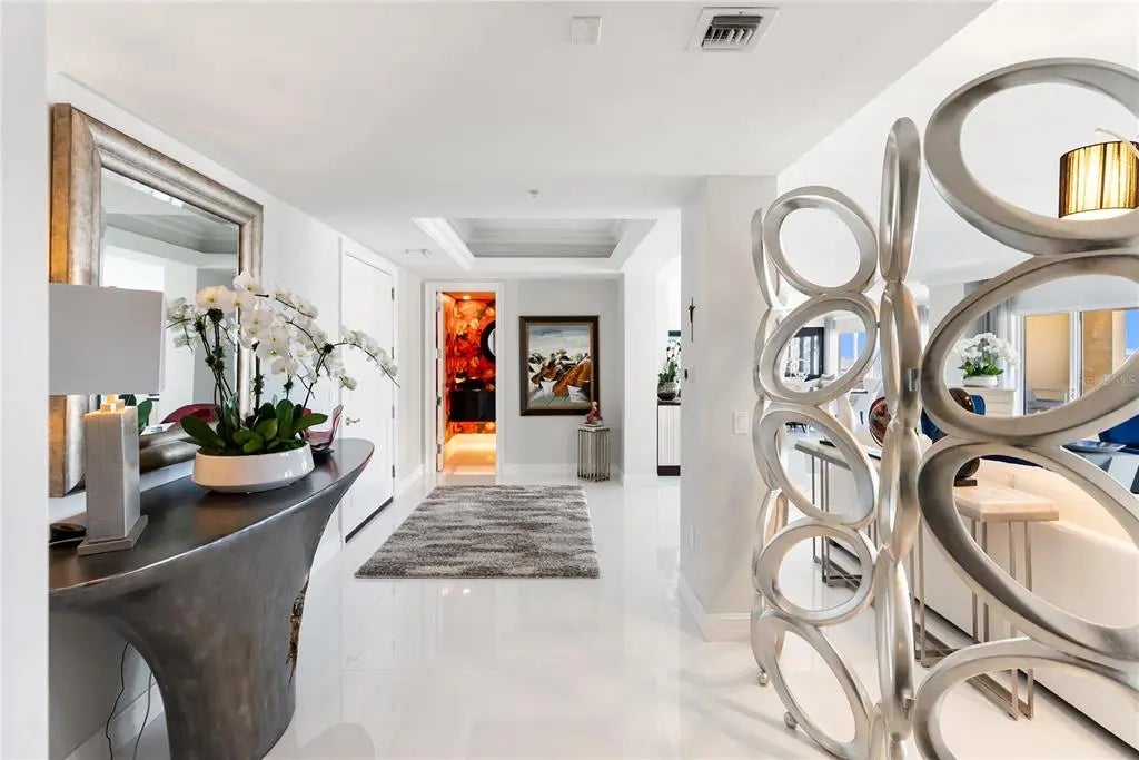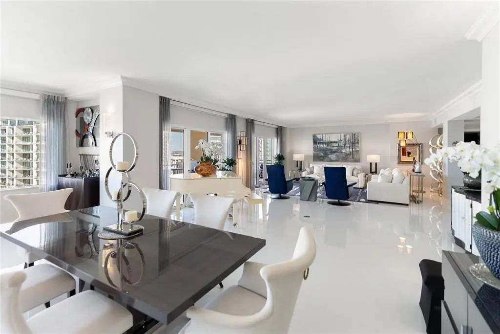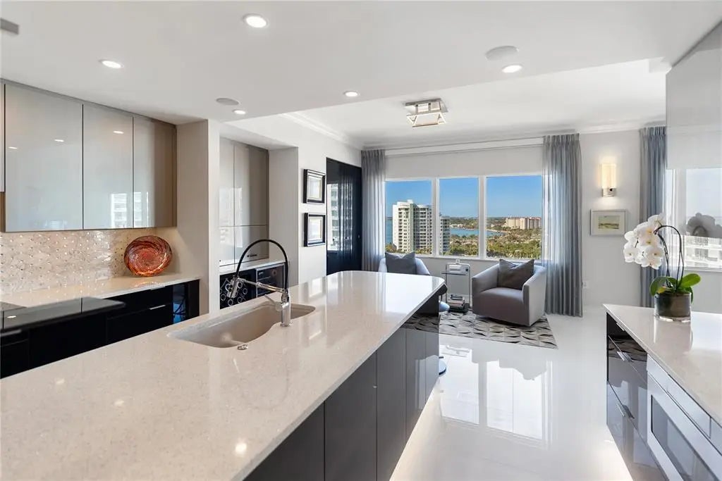Experience luxury living at the iconic Ritz-Carlton Residences. The most updated unit in the building, this penthouse features top-of-the-line finishes, 24” Portugal tile throughout, water views from every room, and western exposure for stunning Sarasota Bay sunsets. The state-of-the-art kitchen includes bespoke cabinetry, a large island, and premium appliances. Three en-suite bedrooms, a private theater room, and a Sonos sound system complete the interior. Expansive windows frame bay views by day and vibrant western sunsets in the evening. This unit conveys with a Ritz-Carlton Gold Membership, providing access to the Beach Club and Golf Club. Residents enjoy full-service amenities including valet, concierge, in-room dining, on-site restaurants, and a fitness center. Everything you need for refined city living is seamlessly combined in this penthouse. Two premium parking spaces and nearby marina access are included. This penthouse can be purchased turnkey, with panoramic water views, exceptional design, and the service and prestige of the Ritz-Carlton brand.