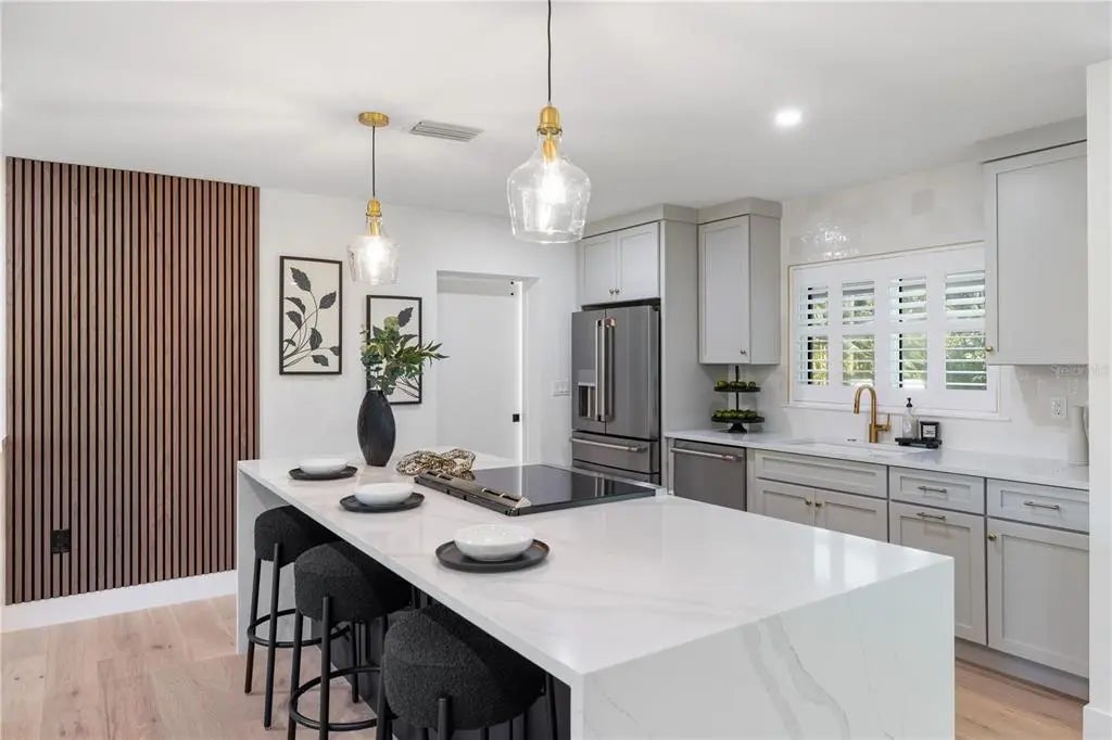 Experience elevated coastal living in this fully updated 4-bedroom, 3-bath home offering 2,529 sq. ft. of refined space in the coveted San Remo Estates community. Just steps from the North Siesta Key Bridge, this residence combines a serene neighborhood setting with exceptional convenience to Sarasota’s top waterfront amenities. Inside, an open-concept layout highlights a newly designed kitchen with modern appliances, a dedicated laundry room, and a versatile fourth bedroom perfect for an office, gym, or flex space. Custom closets throughout the home—crafted by Design Studio California Closets—enhance storage and organization, while thoughtful finishes create a warm, contemporary feel. A spacious 2-car garage adds everyday practicality. Set on a generous 0.33-acre lot, the outdoor space is designed for entertaining and relaxation with a brand-new pool with champagne spa hot-tub, covered lanai, expansive patio, and outdoor bar area including a new full summer kitchen. Additional upgrades—new landscaping with irrigation, exterior lighting, a dog run, and a cozy fire pit—make this property an ideal retreat for enjoying Florida living at its finest.