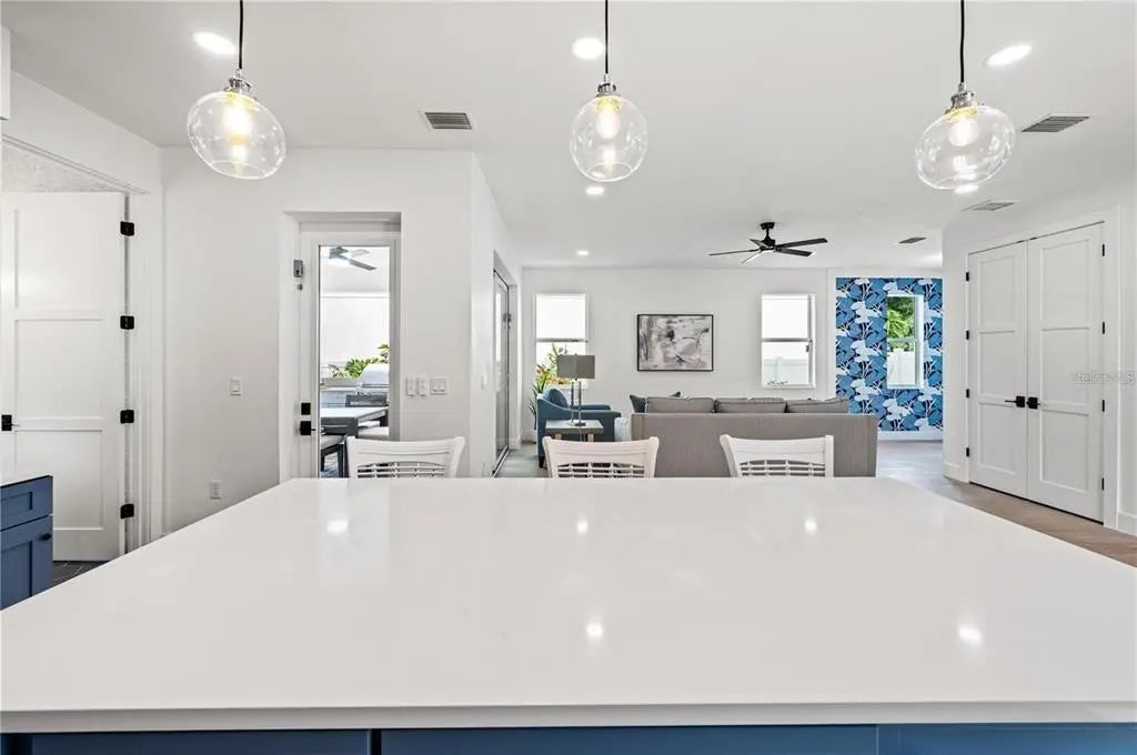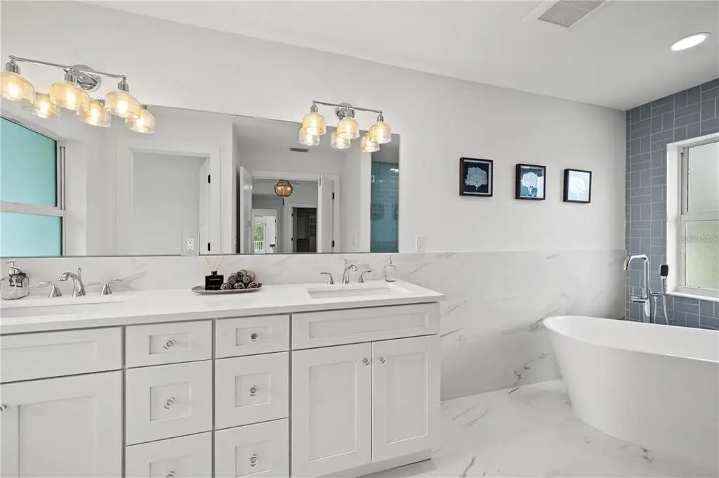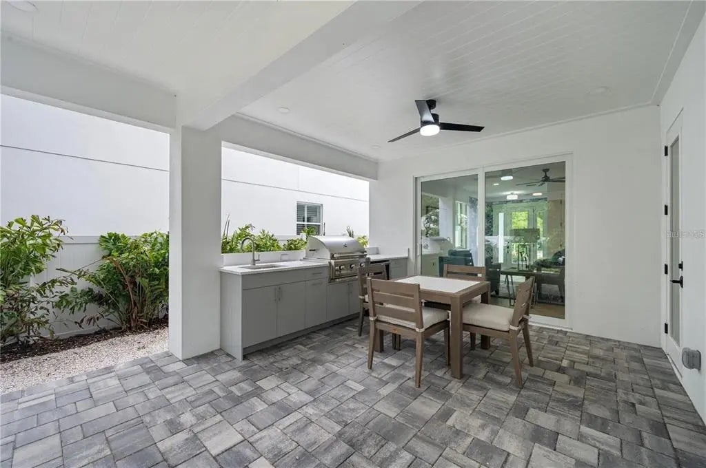 Welcome to this stunning coastal home with elevator, featuring 5 bedrooms, 2.5 bathrooms, and 3,023 square feet of living space. Additional opportunity to add bathrooms with modification add-on with the builder. From the moment you enter, you'll be captivated by the open floor plan, pool view, and fantastic design. This dazzling property, boasts an open floor plan that features high ceilings, natural light, and high-quality finishes throughout. The home features a modern and elegant kitchen with top-of-the-line Cafe' appliances, quartz countertops, and custom cabinetry. The primary bedroom located on the upper level can be accessed by elevator is a true sanctuary, offering a plush and peaceful retreat. It boasts vaulted ceilings, en-suite bathroom that includes a soaking tub and a separate shower that's great for unwinding after a long day. The room also features a generously sized walk-in closet with abundant space for storage and organization as well as a private terrace. On the second floor you will find three vast bedrooms, with plenty of closet space for added convenience and comfort. One of the most notable features of the second floor is the sizable sundeck and balcony, which are attached to both bedrooms. The laundry room is conveniently located on the second floor as well. The spacious bonus room offers endless possibilities, from an office, den, playroom, media center or a home gym. This home has two patios with an outdoor area with a large pool and hot tub that seamlessly blend the indoor and outdoor living with meticulously planned landscaping. Situated between Siesta Key and Downtown Sarasota, you will have easy access to some of the best beaches, restaurants, and shopping in the area. Whether you are looking for a day at the beach, a night out on the town, or a quiet evening at home, this home has everything you need.