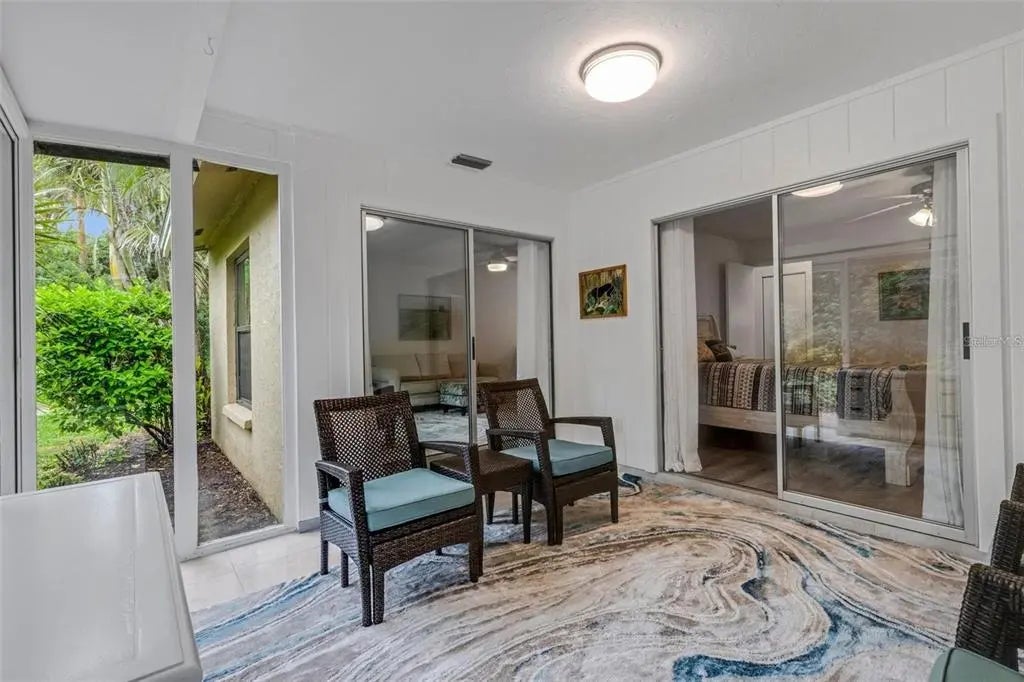 Turnkey! Open floor plan! Privacy! Great amenities! No CDDs! Well maintained home! The outside is the job of the diligent HOA, the inside is for the owner to make home. This is your chance to call this beautiful condo yours! It begins with a covered carport and a keyless entry. Next the kitchen has been masterfully remodeled featuring: +Granite counter tops +Gas stove and oven +Deep, soft closing cabinetry +Fan/light combination +Kitchen Stainless Steel Appliances stay with the home +Deep, open counter convenient for cooking or to use as a breakfast bar +New tile for the backsplashes and floors. The home also features +New flooring throughout most of the home +New Impact Windows throughout +Indoor laundry (Washer and Dryer stay with the home) +2 beautifully, well kept bathrooms (one is walk-in, the other has a tub) +Fans in each primary room +Gas hot water heater +Tiled and enclosed Florida room perfect for relaxing +Large storage shed. Further, the attic is large enough to use for storage. Two areas of 5x8 decking sheets have been installed in the attic to support quite a bit of weight to store whatever the homeowner needs. This home is perfectly tucked back in a cul-de-sac giving it more space in the side yard with brilliant landscaping, less traffic, and more privacy. This home is a must have. The neighborhood community has much to dol. The HOA is responsible for all things outside (roof, grass, irrigation, carports, driveways, community center, paved road which was recently redone, etc.) The community center features a heated pool, full kitchen available for entertaining your guests, pool table, shuffleboard, tennis courts, pickleball, grills, books and more. They also provide a place for recycling to be dropped off and a place to wash your car freely. Beyond the HOA is a lively, fantastic community included but not limited to Siesta Key Beach, Lido and Turtle Beach, Sapphire Shores, St. Armands Circle, Ringling Museum of Art & Design, Marie Selby Gardens, Asolo Theatre of Performing Arts, Sarasota Ballet, USF, Ringling College of Art & Design, Sarasota Bradenton Airport, UTC Mall, I could keep going but you get the point, the community offers a great deal for entertainment, dining, relaxation, grocery stores, public transit, churches, and exercise. Prepare to make your move! Call today to schedule a tour of what could be your future home.