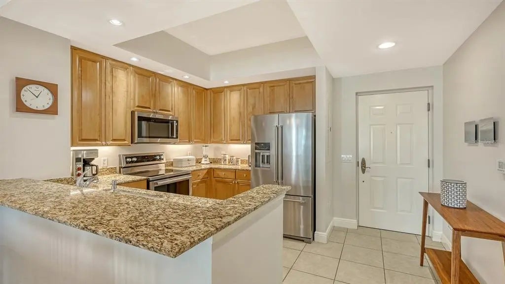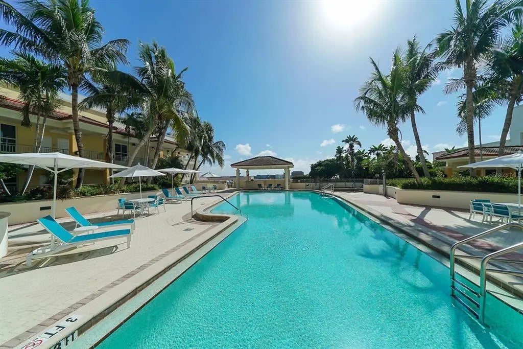 REFINED DOWNTOWN LIVING: A FURNISHED TURNKEY RETREAT AT ONE HUNDRED CENTRAL. Experience an elavated urban sanctuary in this chic, fully furnished residence at One Hundred Central. Unit C521 offers a unique villa-style experience on the coveted 5th-floor amenity level, where your front door opens directly onto a lush, tropical resort-style pool deck. Enjoy immediate, convenient access to the heated pool and spa—creating a backyard feel in the heart of the city. This bright and airy 2-bedroom, 2-bath retreat is designed for effortless living and entertaining with 1,114 sq. ft. The open-concept interior impresses with 9’4" ceilings, crown molding, maple cabinetry, and granite countertops. Newer appliances provide peace of mind, including a new Carrier A/C (2023) and a Rheem hot water heater. Impact-resistant sliders lead to a private balcony and additional climate-controlled storage. Plus two side-by-side parking spaces on the fourth-floor garage level adds rare value to this downtown gem. One Hundred Central is a premier, pet-friendly building (2 pets, any size!) featuring elite services, including a 24-hour concierge, fitness center, movie theater, art studio, and a private guest suite for your visitors. The location is truly second to none. You are literally steps from Whole Foods, Starbucks, and Main Street’s world-class dining and arts scene. When the coast calls, you are just minutes from the Bayfront, the designer boutiques of St. Armands Circle, and the powdery white sands of Lido and Siesta Key. Whether you are seeking a seasonal escape or a sophisticated full-time residence, this turnkey sanctuary is ready for you to move in and start enjoying the Sarasota lifestyle today!