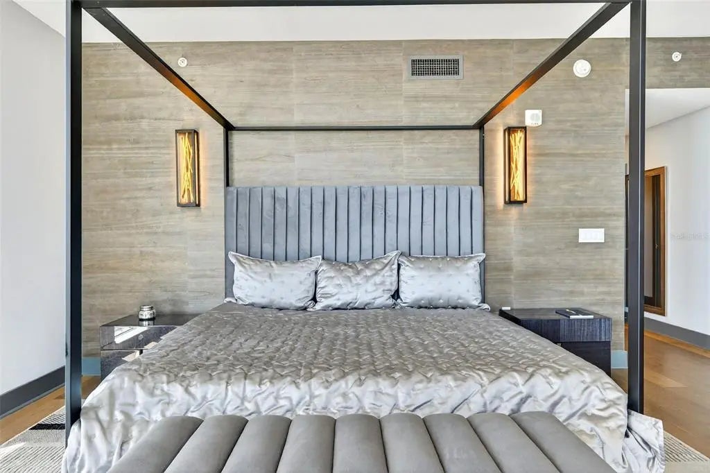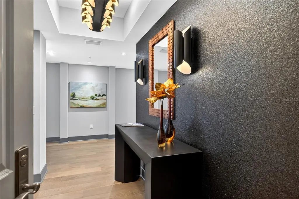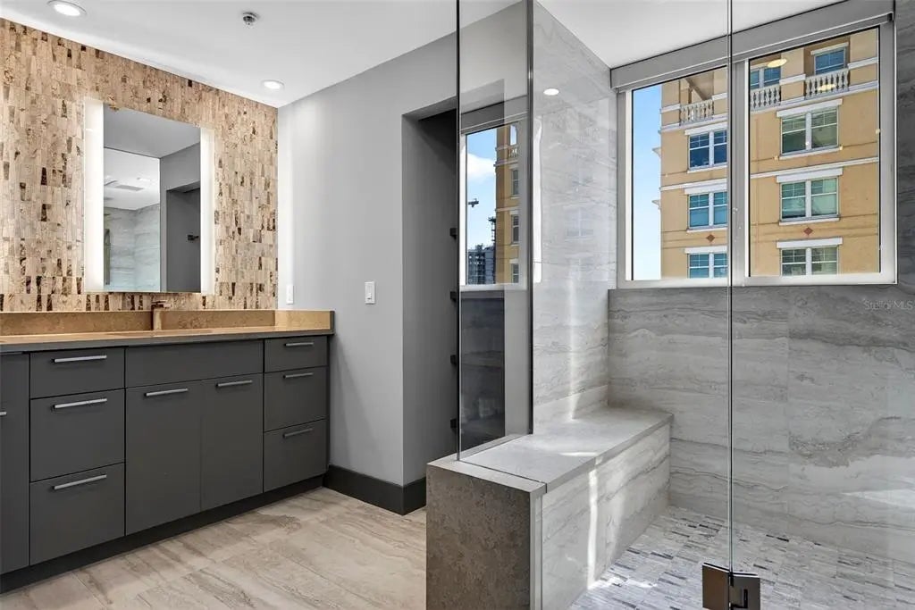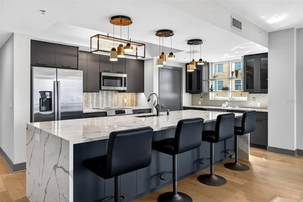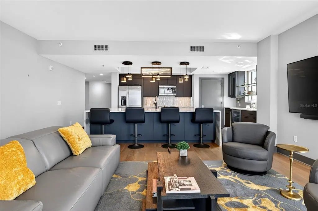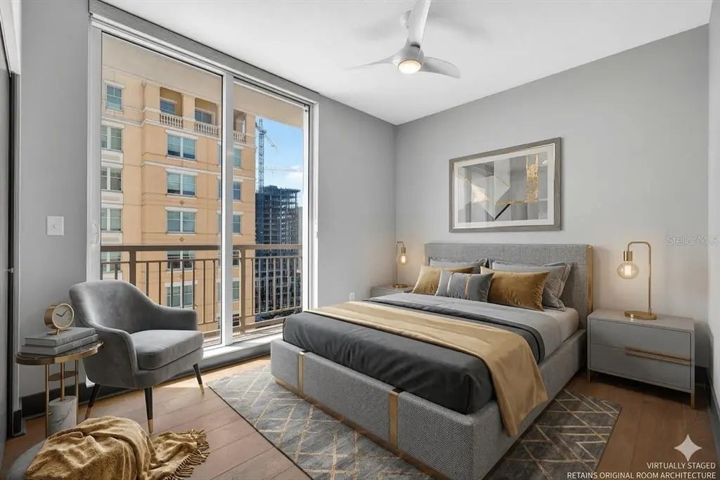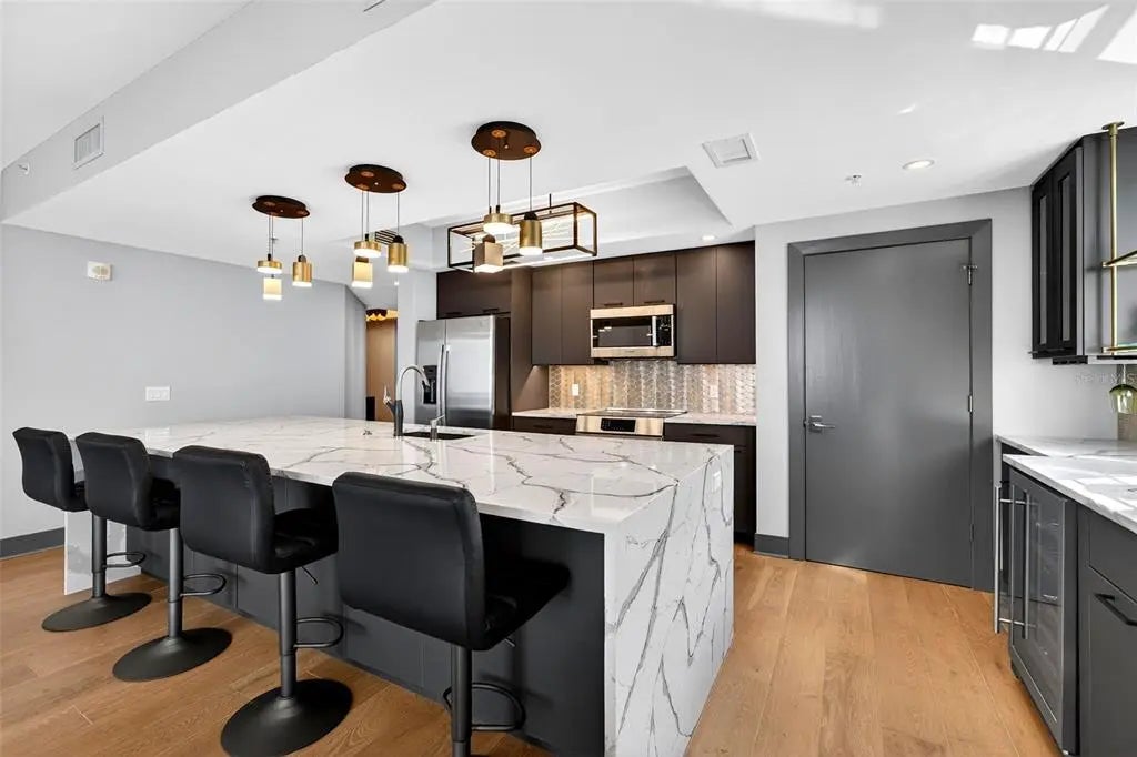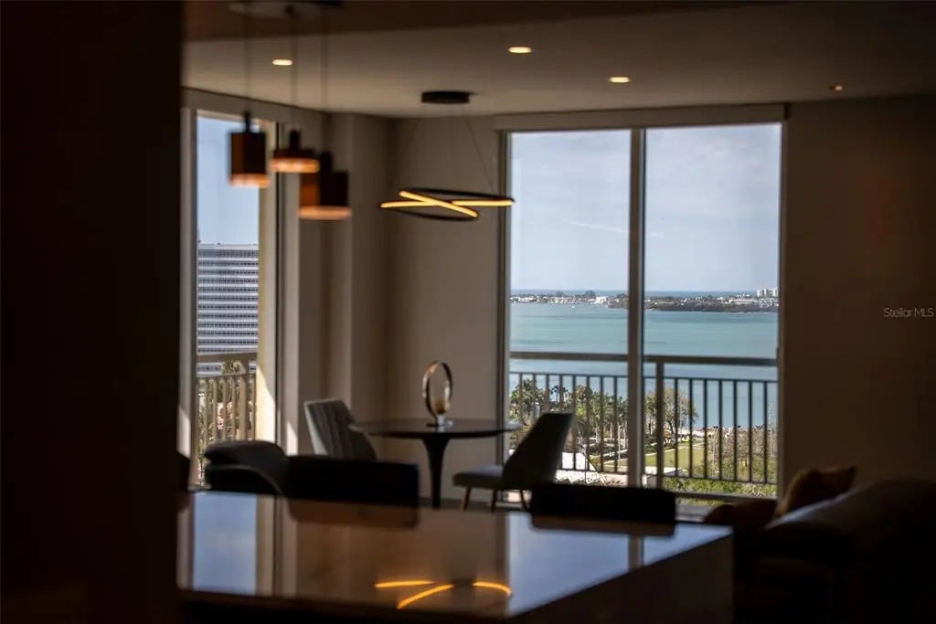 Experience the ultimate "sweet spot" of downtown living. This extraordinary 12th-floor corner residence at Alinari offers a rare combination: high-floor serenity and a forever-protected panorama of Sarasota Bay. While new developments risk future obstruction, your view over the 53-acre "The Bay" park is a guaranteed horizon. This sanctuary-in-the-sky features an expansive wrap-around balcony off the primary suite and living area, plus a private third balcony for guests. Inside, high ceilings and rich wood flooring lead to a modern kitchen with quartz counters and premium upgrades. Enjoy the vibrant energy of the Rosemary District and Van Wezel—just steps away—then retreat to a quiet, secure home away from the center-city noise. Amenities include 24-hour security, a heated lap pool, fitness center, and a rare second parking space. Why pay a "new-build" premium and wait years for a view that might disappear? Your protected Sarasota sunset is ready now.