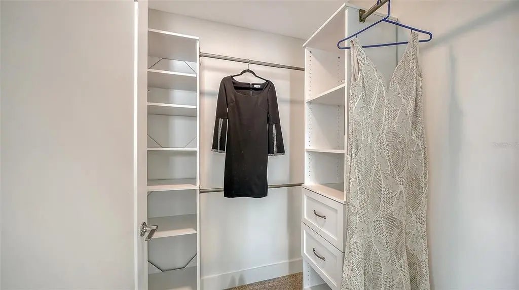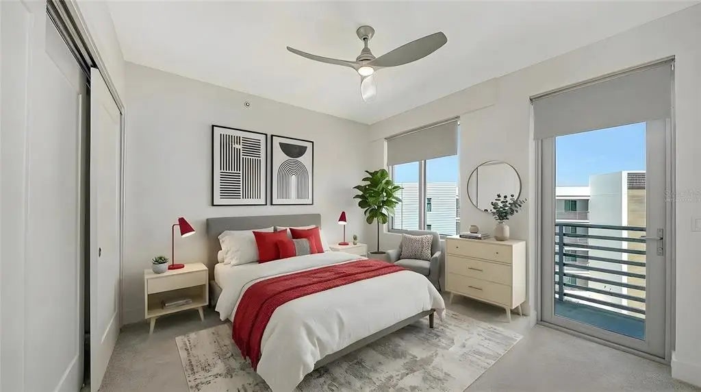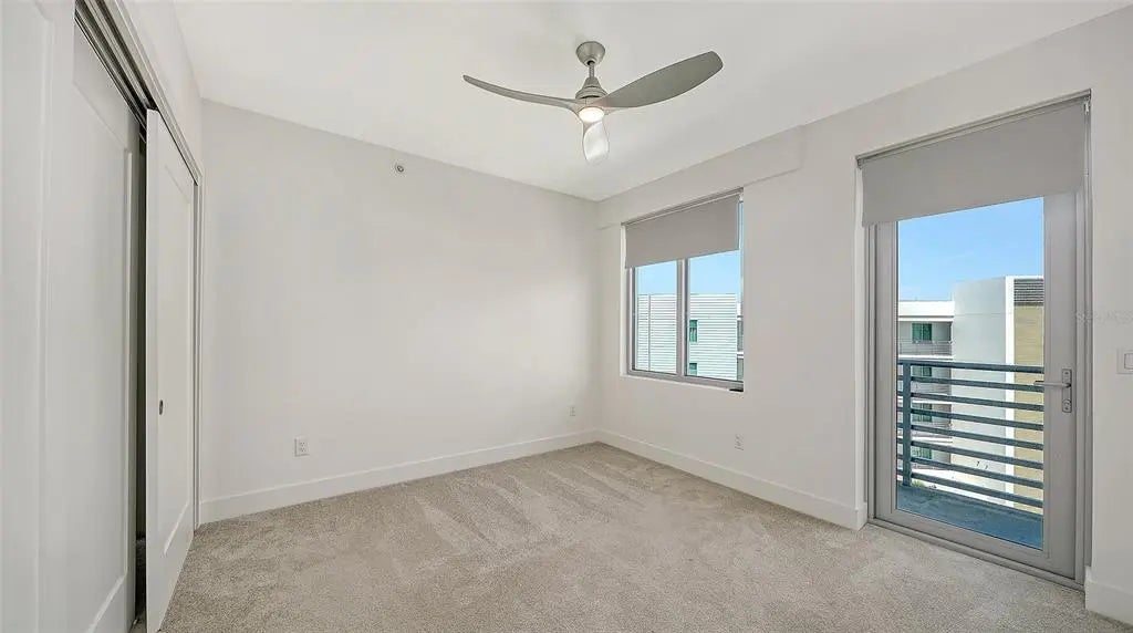 One or more photo(s) has been virtually staged. The west porch and 2 bedrooms have been virtually staged. Fabulous opportunity to own this rarely available END condominium, a light and bright penthouse in The Strand, a waterfront community just minutes from Downtown, Sarasota's vibrant arts, culture, dining, shopping and the new Bay Front area/entertainment. Largest floor plan available. Perfect winter home, investment property or permanent residence. High gloss cabinetry in kitchen & baths. Light quartz counters in the kitchen and baths. Open concept living/ dining area for easy entertaining which leads directly onto your spacious balcony from which you will see evening sunsets. This condo has an assigned garage parking spot and storage cage. Newer construction as of 2022, and built to the latest hurricane codes. Impact sliders and windows throughout. Low maintenance fees, generous rental policy (1 week minimum/ 52 times/year) and a dog friendly gated community. Several EV charging stations are available along with plenty of guest parking. Amenities include heated pool, spa, gas grills, fitness center, fire pit, kayak launch, dog park, on-site property manager (M-F) and so much more, a must see. The Strand consists of 2 buildings, total of 152 units, and 47 boat slips which can be purchased when available if one does own in The Strand.