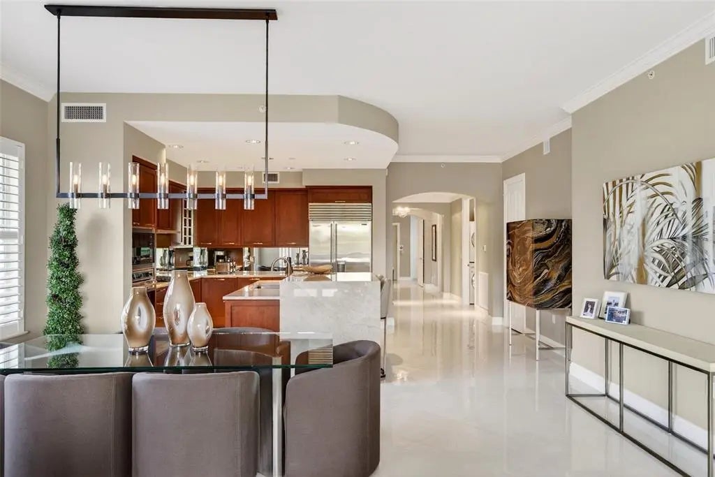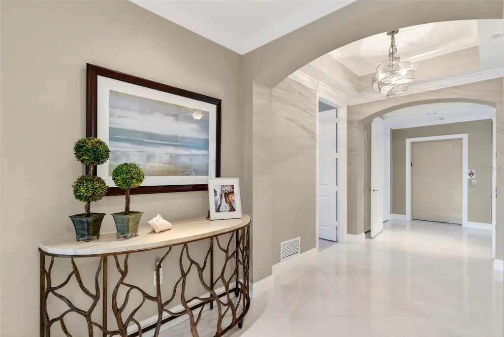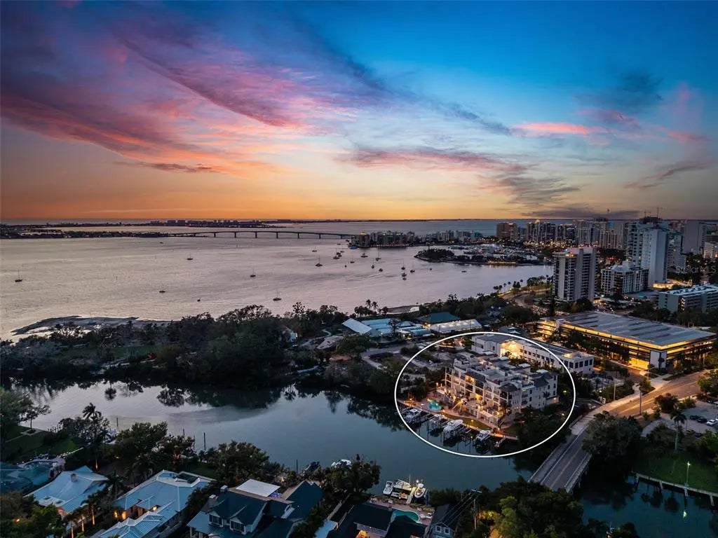 Tucked along the shimmering waterfront in the heart of Sarasota, Hudson Crossing is an exclusive enclave of just twelve residences, offering an exceptional balance of privacy, sophistication, and walkable convenience. Perfectly positioned across from the beautifully revitalized Marie Selby Botanical Gardens, this coveted address places you moments from the bayfront, world-class dining, and a vibrant arts and cultural scene—while still preserving a tranquil, residential ambiance. This refined three-bedroom waterfront residence lives with the scale and comfort of a single-family home, paired with the effortless luxury of condominium living. Thoughtfully curated for both lifestyle and function, the home includes a private two-car garage, ground-level storage, a deeded boat slip, and a rare, exclusive rooftop terrace—an offering seldom found in such a premier downtown setting. Spanning over 2,500 square feet, the interiors are impeccably maintained and designed for immediate enjoyment. High ceilings and elegant tile flooring set the tone for the light-filled, open-concept layout, ideal for both relaxed living and sophisticated entertaining. At the heart of the home, a chef-inspired kitchen showcases custom cabinetry, premium stainless steel appliances including Wolf, Bosch, and Sub-Zero, a gas cooktop, walk-in pantry, and an expansive breakfast bar that seamlessly connects to the main living areas. Walls of impact-rated sliding glass doors frame the living and dining spaces, opening to a waterfront terrace that blurs the line between indoors and out. Here, tranquil water views and gentle coastal breezes create a serene backdrop for everyday living. The primary suite serves as a private sanctuary, complete with terrace access, two spacious walk-in closets with custom built-ins, and a luxurious ensuite bath beautifully appointed bath with quartz finishes and a large soaking tub. Two additional guest suites are thoughtfully positioned for privacy, each offering walk-in closets and flexibility for use as guest accommodations, a home office, or a refined library. In addition to the private 2-car garage with EV hookup, built-in cabinetry, and bike storage, this residence includes a large private storage cabana near the pool and dock, providing ample space for kayaks, fishing gear, and more – a rare feature that outdoor enthusiasts will love. For boating enthusiasts, the deeded dock with 20,000 lbs. boat lift provides direct access to Sarasota Bay, with effortless navigation to downtown landmarks such as the Ringling Bridge. Kayak down to Marina Jack or sail to Big Pass and New Pass in just minutes, with seamless passage to the Gulf and its renowned beaches. Hudson Crossing represents a rare opportunity to experience a low-density, waterfront lifestyle in one of downtown Sarasota’s most desirable locations—just moments from the Bayfront, theaters, galleries, boutiques, the weekly farmers market, and the area’s celebrated white-sand shores.