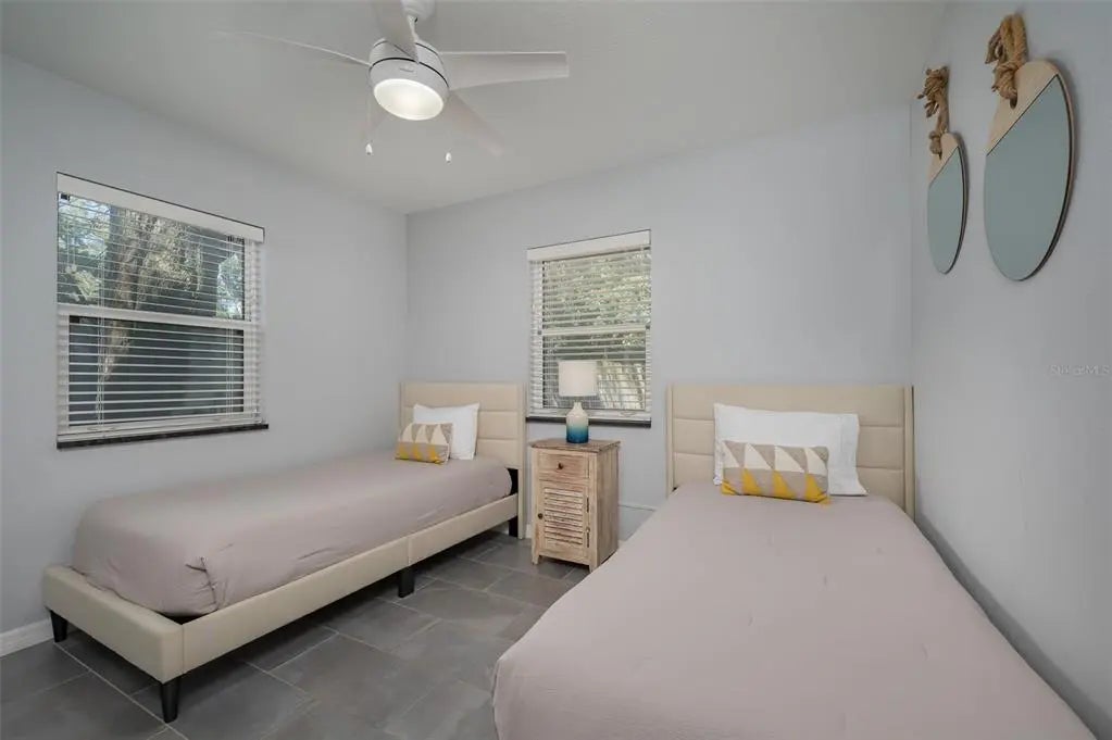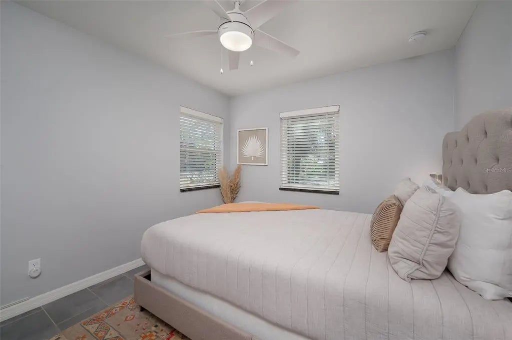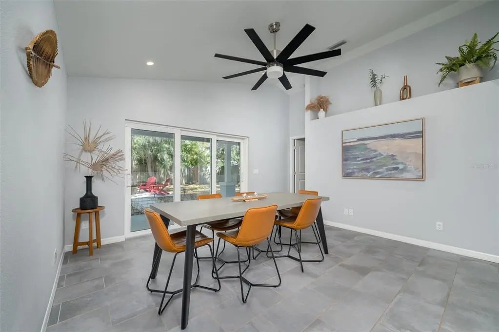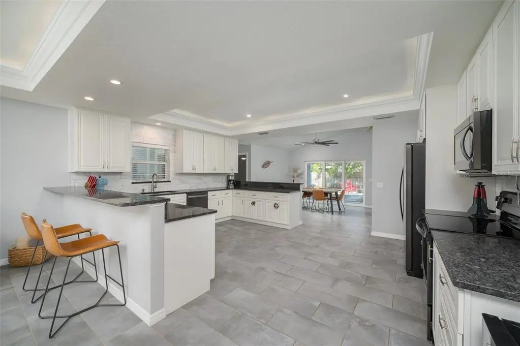 Completely rebuilt in 2017, this beautifully updated 3-bedroom, 2-bath home offers modern construction and thoughtful design throughout. Major improvements include new plumbing, updated electrical with a new meter, a new AC system with updated ductwork, a metal roof with new trusses, and modern windows for added efficiency and peace of mind. The single-story layout offers 1,513 sq ft of well-designed living space featuring tile flooring throughout, tray ceilings with integrated lighting, and a vaulted ceiling in the living room that creates a bright, open feel. The open-concept floor plan seamlessly connects the living, dining, and kitchen areas, ideal for entertaining and everyday living. An 8-foot sliding glass door opens to a covered porch and a large fenced backyard, creating an easy indoor-outdoor lifestyle. The kitchen features sleek countertops, modern cabinetry, and Whirlpool stainless steel appliances with ample counter space and storage. Bedrooms are spacious and filled with natural light. The primary suite includes a modern en-suite bath with dual sinks and a walk-in shower, while both bathrooms feature clean, contemporary finishes. The backyard offers plenty of room to add a pool and create your own private outdoor retreat. No HOA. The home can be sold furnished or unfurnished. Strong investment potential in a favorable short-term rental market, ideal for buyers seeking income opportunities. Conveniently located just minutes from the Ringling Museum, downtown Sarasota, St. Armands Circle, Sarasota-Bradenton International Airport, and the beaches of Lido Key and Longboat Key.