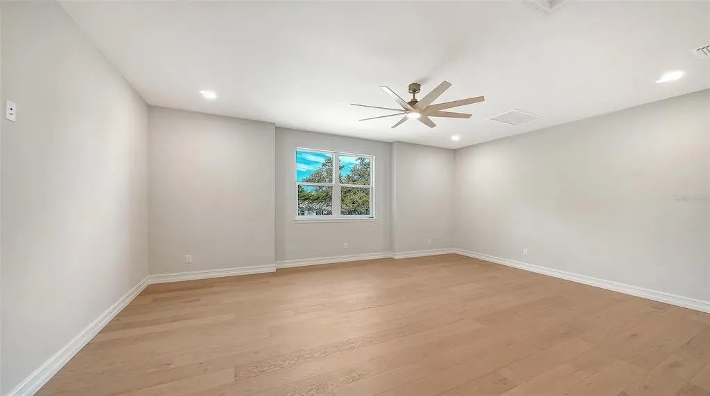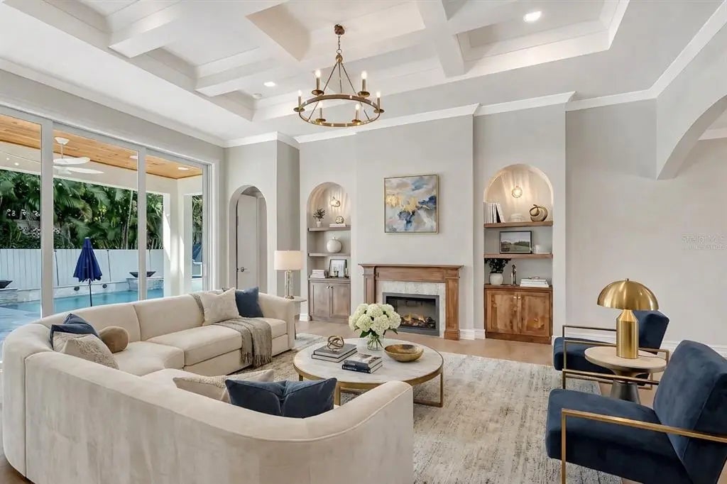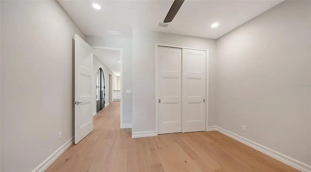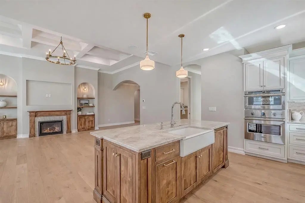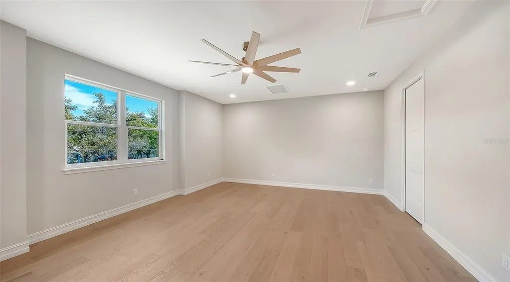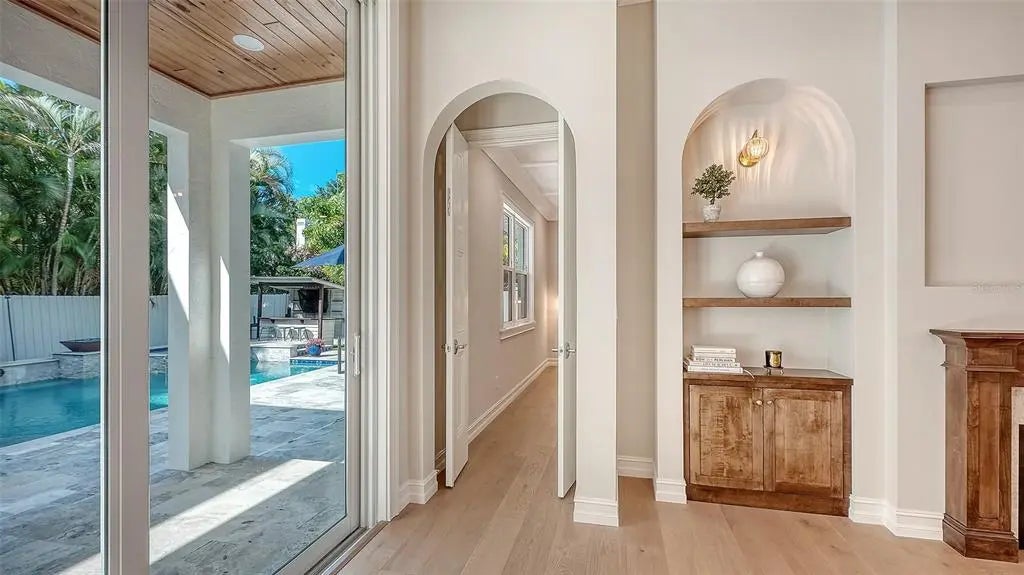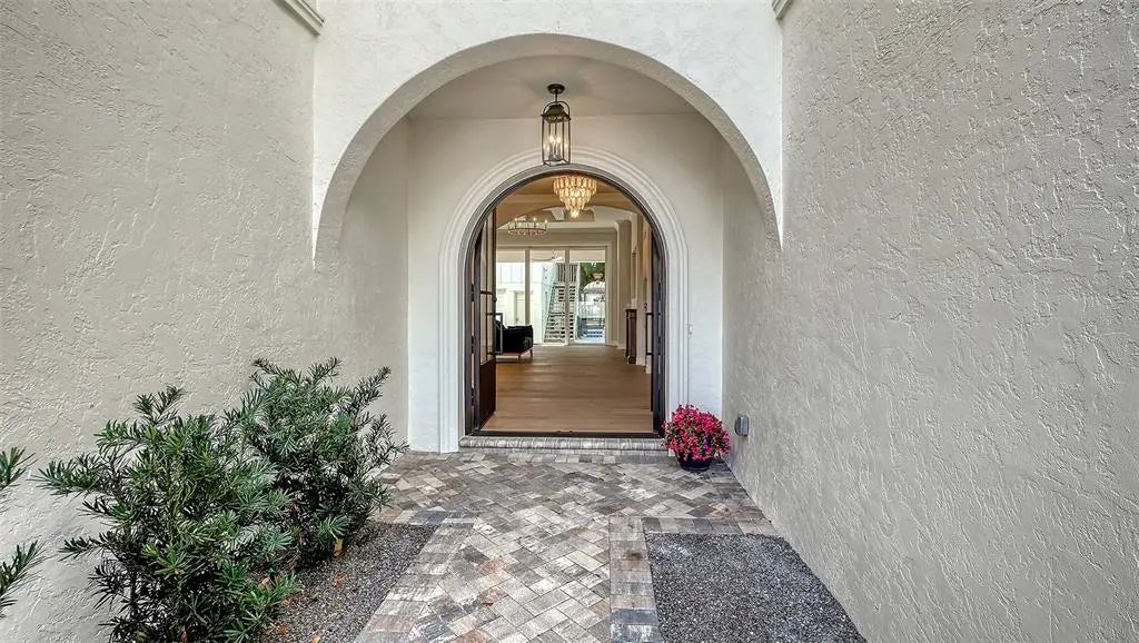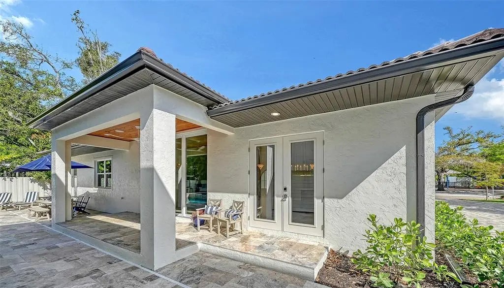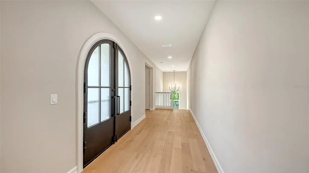 One or more photo(s) has been virtually staged. West of trail, 2026 Custom Build, Exquisite Modern Mediterranean estate with a seamless blend of classic architecture and contemporary finishes. This exceptional 5-bedroom, 4-bathroom residence is thoughtfully designed for both everyday living and effortless entertaining. The main level features a luxurious first-floor primary suite with a walk-in closet and spa-inspired bathroom with dual vanities, along with two first-floor guest bedrooms and a private office. Wide-plank oak hardwood floors, custom built-ins and maple wood cabinetry with inset doors , and a warm, inviting electric fireplace enhance the home’s elegant yet comfortable ambiance. A fully integrated surround sound system extends throughout the living room, kitchen, and outdoor entertaining areas. The chef’s kitchen is beautifully appointed with premium Viking appliances, Taj Mahal quartzite countertops, custom cabinetry, elevated fixtures and designer lighting, along with a stylish bar featuring Cristallo quartzite and a beverage center—perfect for hosting and entertaining. The second level offers a spacious bonus room ideal for a media lounge or game room, along with two additional bedrooms and a gallery-style hallway with an open balcony, adding architectural interest and natural light. Additional highlights include natural gas, a gas-on-demand water heater, enhanced exterior insulation for energy efficiency, a concrete tile roof, irrigation system, and abundant storage throughout. Architecturally, the home embraces classic Mediterranean elements with a modern sensibility. Arched doorways, windows, and passageways create a sense of flow and understated grandeur, while intricate wrought iron detailing and extensive millwork add depth and craftsmanship. Statement chandeliers and curated designer lighting elevate each space, enhancing the home’s refined aesthetic. A detached guest home, complete with a private bedroom, full bathroom, and living area, offers ideal accommodations for guests or extended stays. Outdoors, a custom-designed oversized pool showcases timeless Mediterranean blue tile, complemented by elegant fire bowls and a cascading waterfall spa—creating a true resort-style setting. The property is complete with a 2-car attached garage in the main home, 2 car covered parking under the guesthouse, and an additional two-car garage, offering both functionality and flexibility. Ideally situated in Southside Village, this residence offers a highly walkable lifestyle just moments from Southside Elementary, Morton's Gourmet Market, local restaurants, and boutique shopping.