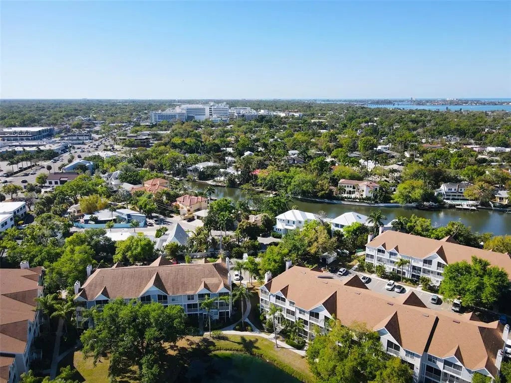 AS PROMISED! Townhome so close to downtown, but priced considerably less! This 2BR/2.5BA second floor "Fiji" model condo has newer laminate flooring throughout except for the staris and hallway, and is offered totally turnkey furnished with a couple of exceptions. Air Conditioner, Water Heater & Washer/Dryer stack unit replaced in 2023. 2 screened lanais (1 downstairs and 1 upstairs) and 2 separate master suites each with an ensuite bath. Great room downstairs, in-unit laundry and a powder room. kitchen with breatfast bar, plus a large closet under the stairs which could be used as a small office if needed. Each lanai has a small storage room too. Unit overlooks the tennis court (which is mainly used now for pickleball) and is just a short distance to the heated pool and spa, and clubhouse with small fitness center. Active friendly community with kayak launch available to residents. Property is currently leased until September 30, 2025, so could be ready for you to spend the next winter season here. Monthly fee includes cable, internet, water, sewer, trash removal, use of the community recreational facilities, professional management along with exterior maintenance and insurance. Right across the street is a Publix supermarket for your convenience. Close to Sarasota Memorial Hospital, Marie Selby Botanical Gardens, and just minutes away from St. Armand's Circle shopping and world-famous Siesta Key Public Beach. Sarasota'a active and cultural downtown is less than a mile away, offering fine dining and the best of the arts with the Sarasota Ballet, Van Wezel Performing Arts Center, the Sarasota Orchestra and much more live entertainment, along with a welcoming night life with something for everyone. Easy access to Sarasota International Airport. Perfect for year-round living, rental, or just for seasonal use. Pet friendly for owners.