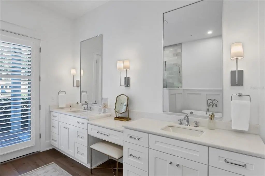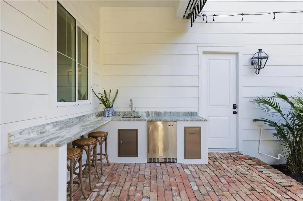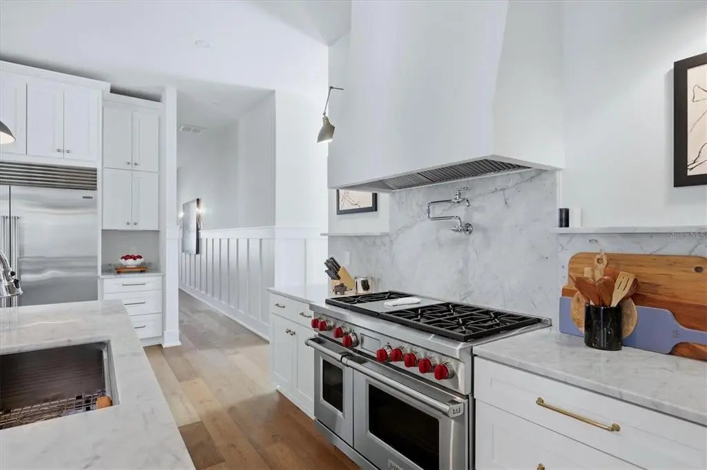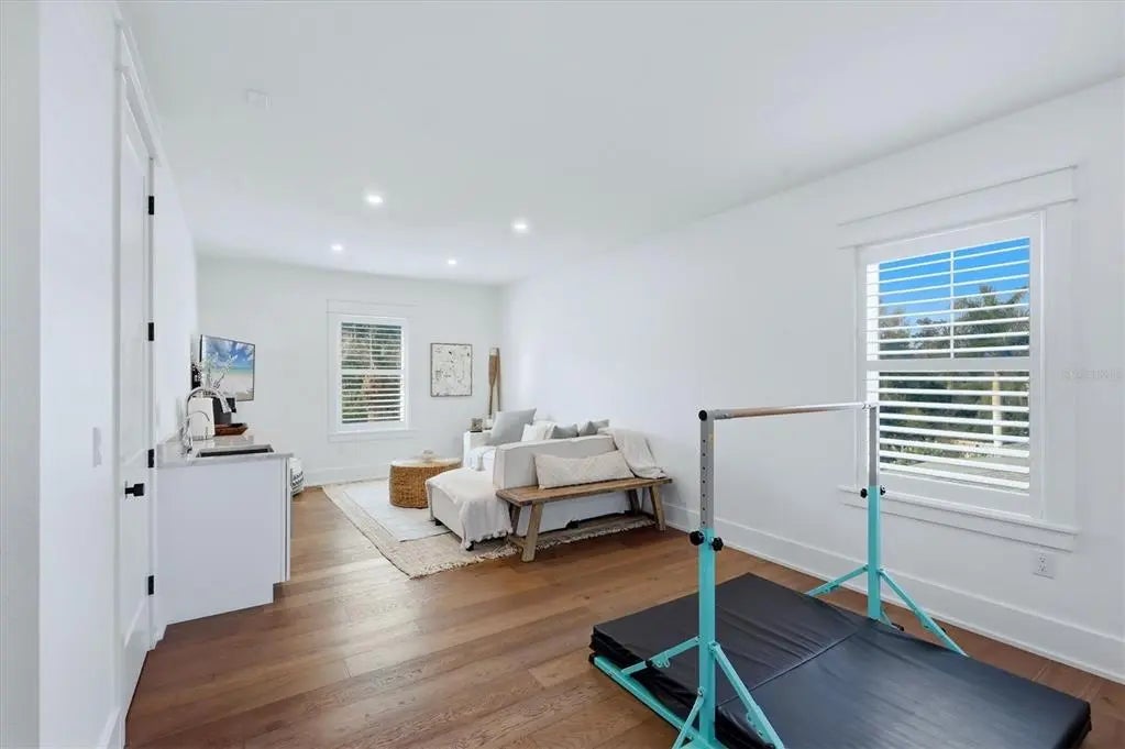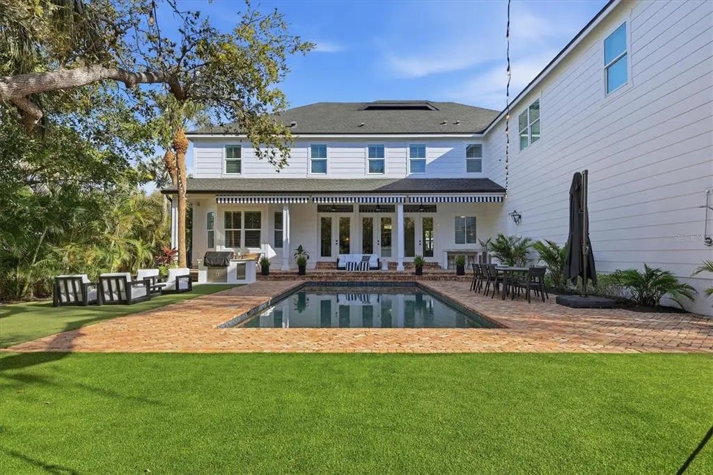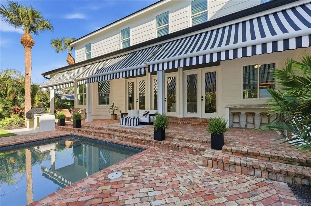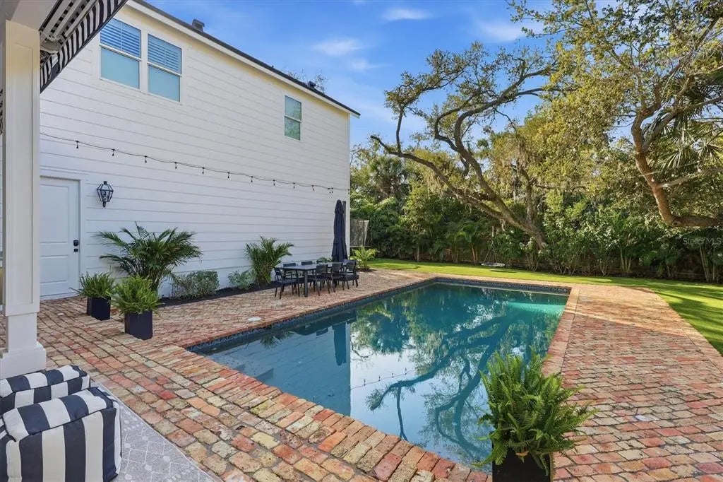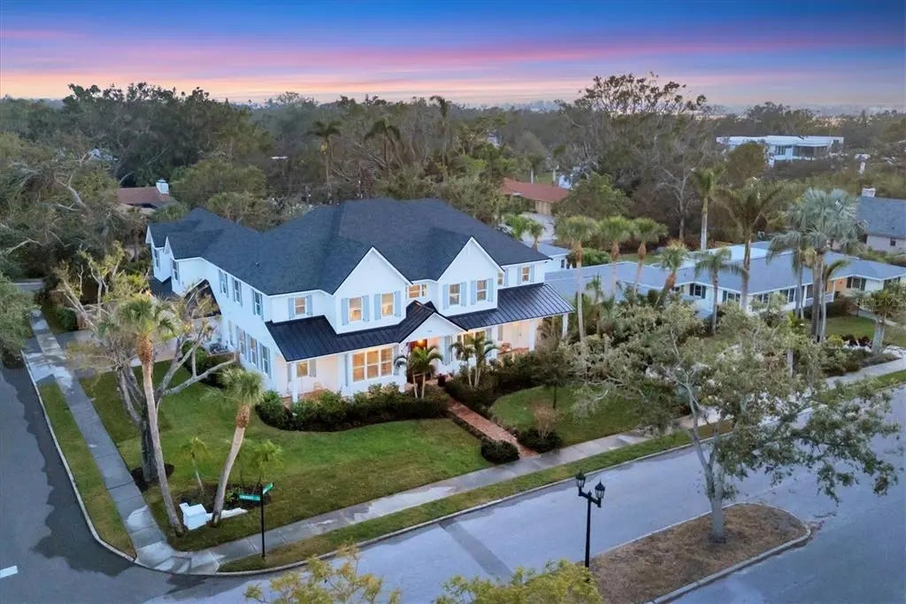 Welcome to this stunning 2021-built home in one of Sarasota's most iconic and picturesque historic neighborhoods, Cherokee Park. Offering luxurious living with thoughtful design, this spacious residence of over 6000 square feet features a desirable first-floor primary suite with a decadent bathroom with soaking tub, oversized marble shower, and access to the covered porch for your morning coffee. The gourmet kitchen is equipped with Wolf and Subzero appliances, marble countertops, a walk-in pantry, oversized island for food prep or casual dining, and sweeping views of the pool and lush backyard. A dedicated dining room provides an elegant setting for formal entertaining. The family room is centrally located for optimal entertaining and boasts a gas fireplace, marble detail, and custom built-ins. The sophisticated den offers custom cabinetry and is ideal for a home office or a sitting room. Upstairs, you'll find four additional bedrooms, each offering ample space and walk-in closet storage, complemented by three full bathrooms. There is a large exercise room / flex space on the 2nd floor which includes counter space and an undercounter refrigerator and relaxation area. The third floor includes a movie room. The first floor laundry room boasts a custom mudroom with shoe cubbies and a built-in desk, conveniently located off the four-car garage. The private guest suite includes a kitchenette, separate laundry, and elevator access, making it ideal for extended family, a live-in nanny or au pair, or visiting guests. This home features beautiful oak flooring throughout, adding warmth and elegance to every room. Impeccable attention to detail is evident in every corner and the rooms are filled with abundant natural light. Step outside to your own private resort-style retreat, complete with a fully equipped outdoor kitchen and bar area, perfect for alfresco dining and entertaining under the Florida sky. Enjoy quiet evenings on the back porch overlooking the heated pool and fenced yard with newly installed and maintenance-free turf grass. Built with steel-reinforced framing and durable Hardie board siding this home offers superior structural integrity, is built to the latest hurricane codes and is not in a flood zone. Perfect for multigenerational living or hosting guests, this home combines modern elegance with practicality. Co-listing agent is the owner.