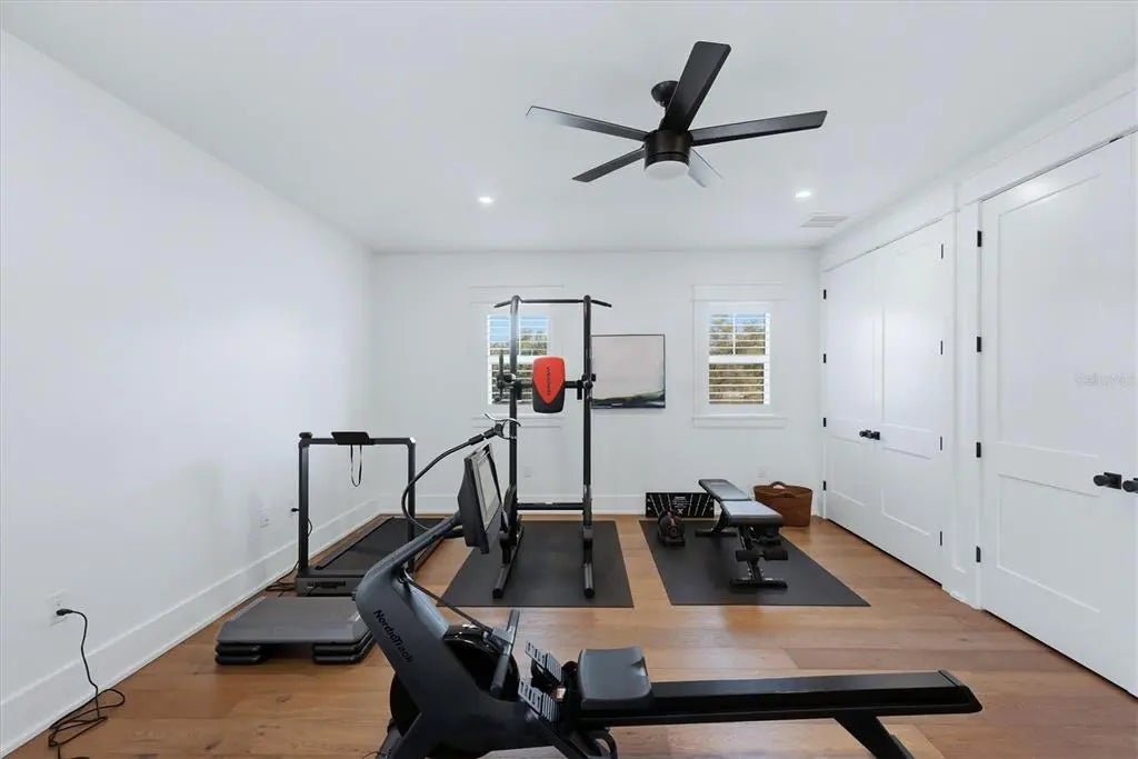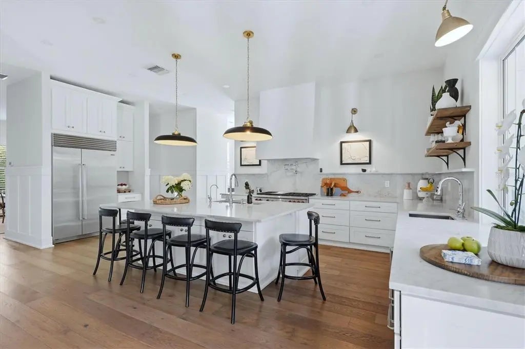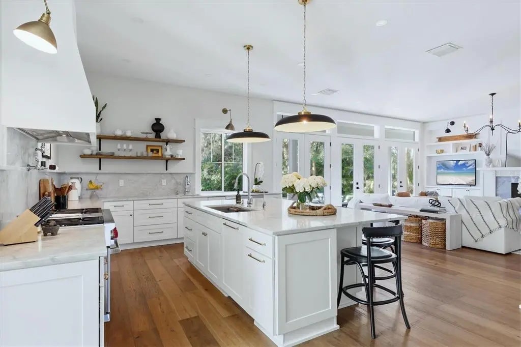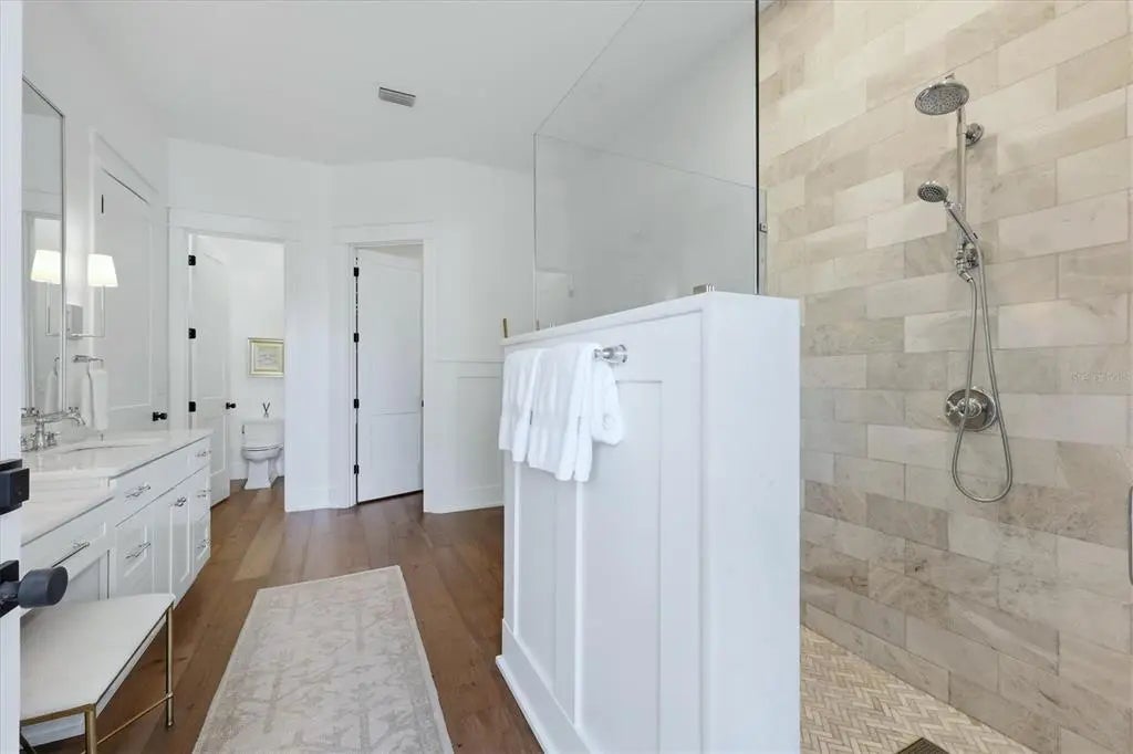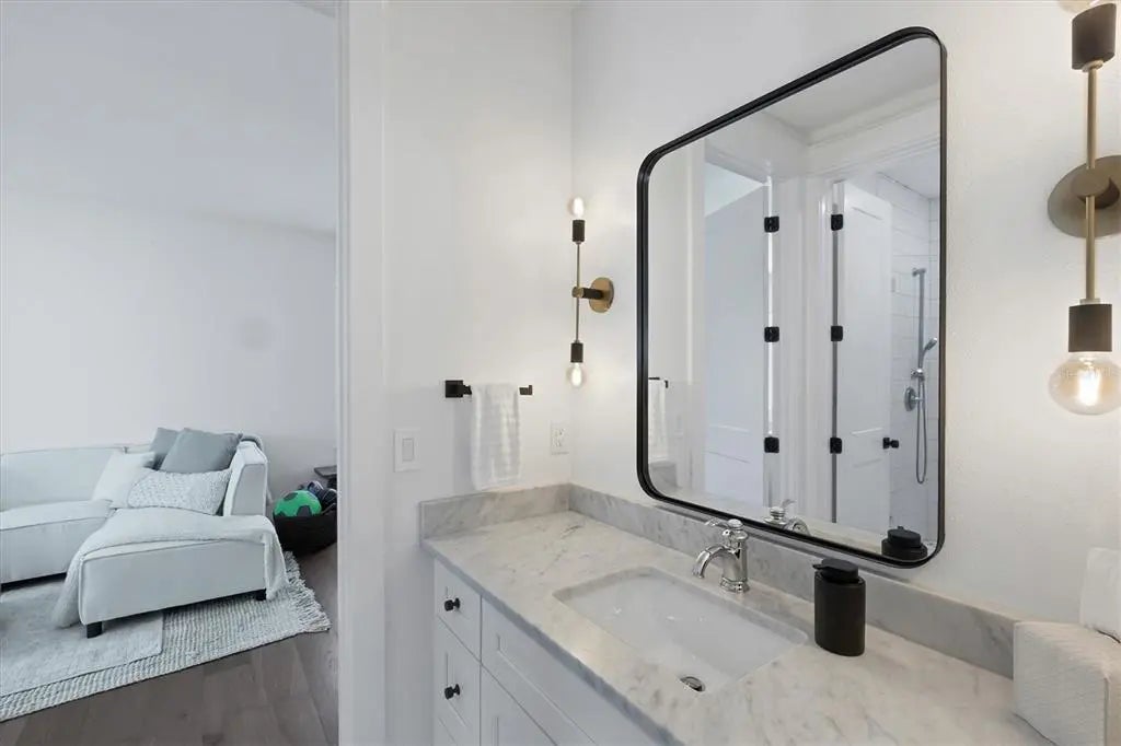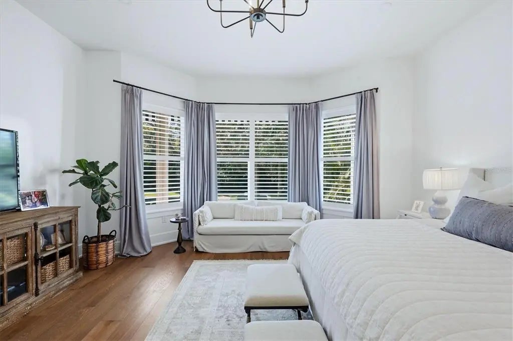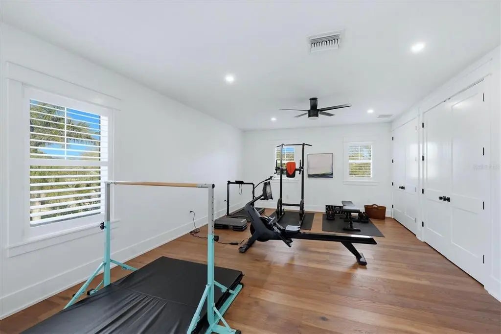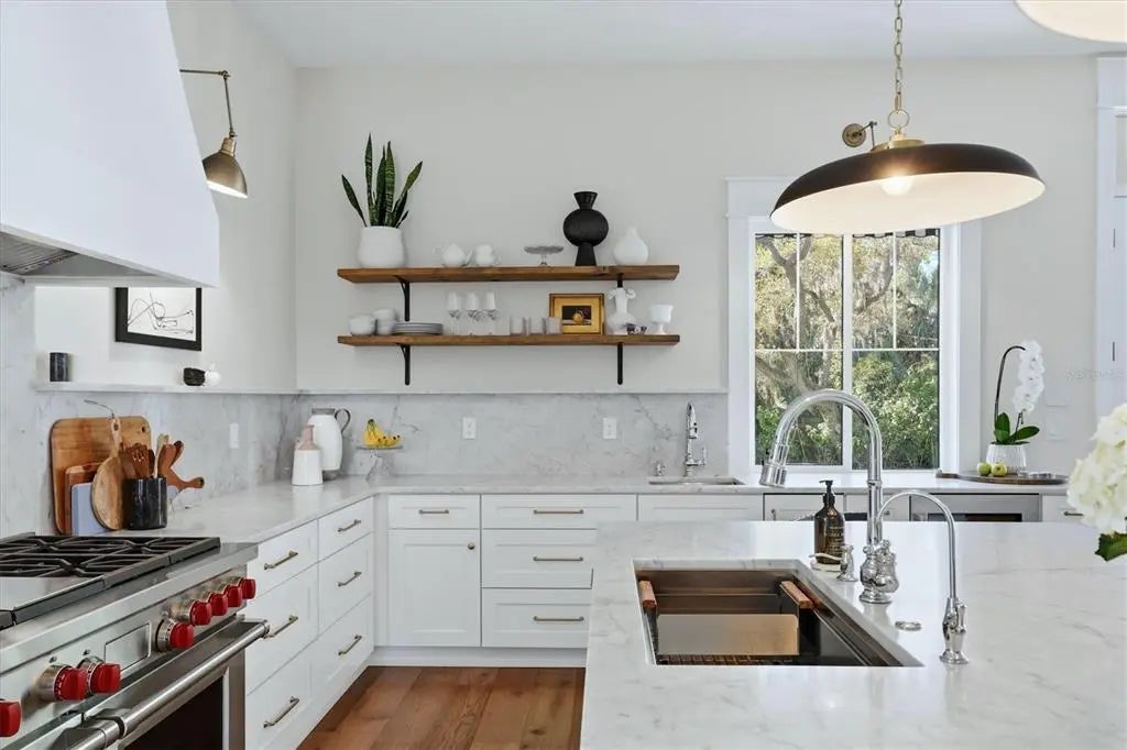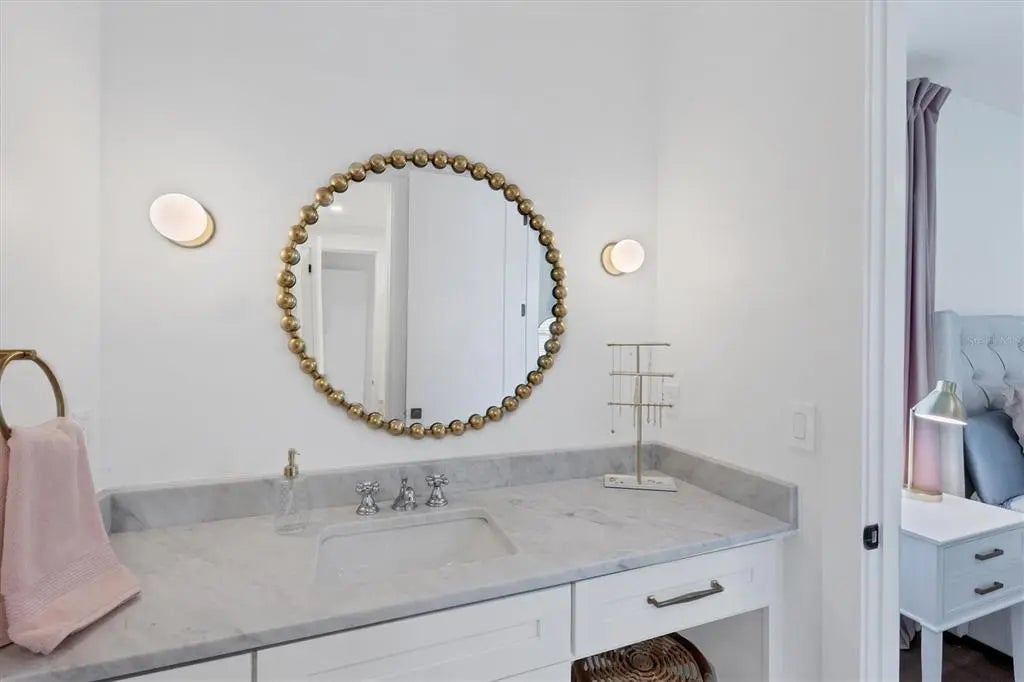 Welcome to this stunning 2021-built home in one of Sarasota's most iconic and picturesque historic neighborhoods, Cherokee Park. Offering luxurious living with thoughtful design, this spacious residence of over 6000 square feet features a desirable first-floor primary suite with a decadent bathroom with soaking tub, oversized marble shower, and access to the covered porch for your morning coffee. The gourmet kitchen is equipped with Wolf and Subzero appliances, marble countertops, a walk-in pantry, oversized island for food prep or casual dining, and sweeping views of the pool and lush backyard. A dedicated dining room provides an elegant setting for formal entertaining. The family room is centrally located for optimal entertaining and boasts a gas fireplace, marble detail, and custom built-ins. The sophisticated den offers custom cabinetry and is ideal for a home office or a sitting room. Upstairs, you'll find four additional bedrooms, each offering ample space and walk-in closet storage, complemented by three full bathrooms. There is a large exercise room / flex space on the 2nd floor which includes counter space and an undercounter refrigerator and relaxation area. The third floor includes a movie room. The first floor laundry room boasts a custom mudroom with shoe cubbies and a built-in desk, conveniently located off the four-car garage. The private guest suite includes a kitchenette, separate laundry, and elevator access, making it ideal for extended family, a live-in nanny or au pair, or visiting guests. This home features beautiful oak flooring throughout, adding warmth and elegance to every room. Impeccable attention to detail is evident in every corner and the rooms are filled with abundant natural light. Step outside to your own private resort-style retreat, complete with a fully equipped outdoor kitchen and bar area, perfect for alfresco dining and entertaining under the Florida sky. Enjoy quiet evenings on the back porch overlooking the heated pool and fenced yard with newly installed and maintenance-free turf grass. Built with steel-reinforced framing and durable Hardie board siding this home offers superior structural integrity, is built to the latest hurricane codes and is not in a flood zone. Perfect for multigenerational living or hosting guests, this home combines modern elegance with practicality. Co-listing agent is the owner.