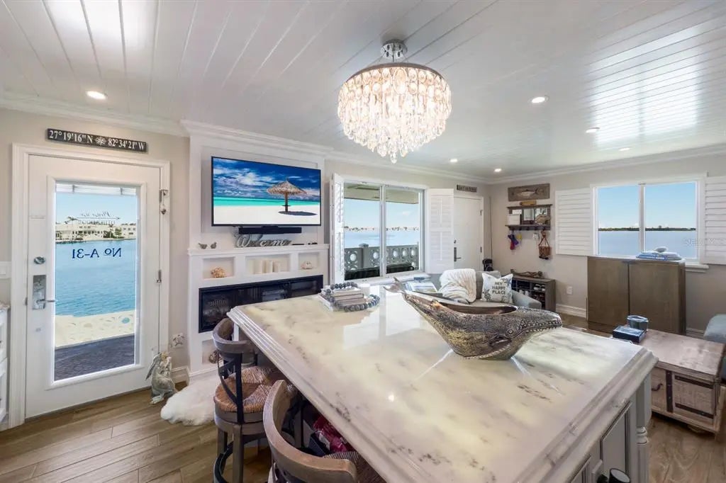 Exquisite FURNISHED interior designer owned condo epitomizing refined coastal living in Sarasota and completely renovated down to the studs in 2019-2020. Interiors are enveloped in a meticulous pallet of ocean-inspired hues that blends timeless style with modern functionality and coastal glam charm. Island living is yours with the most incredible location less than one block to St. Armand’s Circle and a short jaunt from the beach, parks, wildlife centers, 3 yacht & sailing clubs, downtown, The Ritz Carlton, The St. Regis, and a plethora of boutique shops and restaurants. Enjoy breathtaking sunset & turquoise water views from every room over Sarasota Bay and beyond to the Keys. Watching dolphins play and manatees swim along the seawall below your balcony will be a daily occurrence. A more well positioned unit does not exist in Sarasota Harbor (top floor, end unit, Western facing, closest to the water, and closest building to the circle). Professionally envisioned by this talented designer/owner and masterfully executed by a long-standing, local, luxury builder with no expense spared. Entirely new infrastructure, including complete drywall replacement, floors, and raised ceilings, new HVAC and ductwork, in-wall sound insulation, double insulated attic, new electrical panel including wiring in walls, all new plumbing throughout, new 40-gallon water heater, and more. This unit is ultimate storm ready including PGT impact windows and doors and withstood the unprecedented 2024 storm season with incredible resilience and zero damage. The thoughtfully crafted kitchen features only the best of Miele, Sub-Zero and Viking appliances, Waterstone fixtures that shine beneath bespoke lighting, an artist commissioned mosaic, and a hand-forged range hood. A large under-lit quartzite island can seat 6, bench built solid wood Albrecht cabinetry with pullouts, under cabinet outlets, paneled appliances, Cambria 6cm custom profile back countertops, and grout-less sea glass backsplash ensure any chef a seamless experience. The magic is in the details and this unit is a work of art unto itself but within you will find a curated collection of salvaged nautical antique accents from across the world, artwork paying homage to Sarasota’s history, an authentic nautical porthole from a German ship, and master carpentry features such as tongue and groove ceilings, solid wood doors, shiplap accents, 7” stacked crown moldings, 5” baseboards, plantation shutters, and built ins with color changing Dimplex fireplace. The excellence does not stop here...every room includes recessed gimbal lighting with Maestro dimmers, the spa-inspired bathrooms glimmer with custom tile work, hammered nickel sinks, a seamless glass shower, Rohl polished nickel fixtures, hotel double towel racks, heat lamps, Helios LED smart mirrors, and other luxe finishes. Besides the unbeatable location, residents of Sarasota Harbor West enjoy an array of inclusive amenities that include a large heated waterfront pool, clubhouse, shuffleboard, fishing pier, and grill areas. End unit balconies can be screened-in with HOA design approval. Non-deeded boat slips are available for a very small fee on a first-come basis.