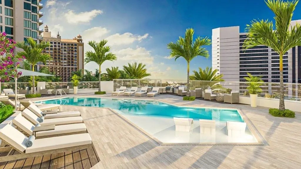 One or more photo(s) has been virtually staged. Pre-Construction. To be built. Discover an elevated standard of waterfront living at The Ritz-Carlton Residences, Sarasota, within the vibrant Quay district. This expansive residence offers over 4,360 sq. ft., featuring 3 bedrooms, 3.5 baths, a den, and west-facing exposures with breathtaking sunset and harbor views. A private elevator opens to a grand great room with soaring 13’ ceilings and walls of glass, seamlessly connecting to oversized terraces with outdoor grilling. The chef’s kitchen is appointed with European cabinetry, quartz countertops, and Wolf & Sub-Zero appliances. Residents enjoy the legendary Ritz-Carlton lifestyle, including white-glove service, dedicated concierge, in-residence dining, and curated experiences. Wellness-focused amenities include a state-of-the-art fitness center, movement studio, waterfront wellness retreat with hot/cold plunges, sauna, steam, and private treatment rooms, along with a sports lounge and golf simulator. A rare opportunity—only two residences remain in this highly sought-after floor plan.
