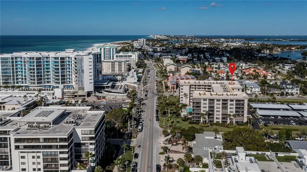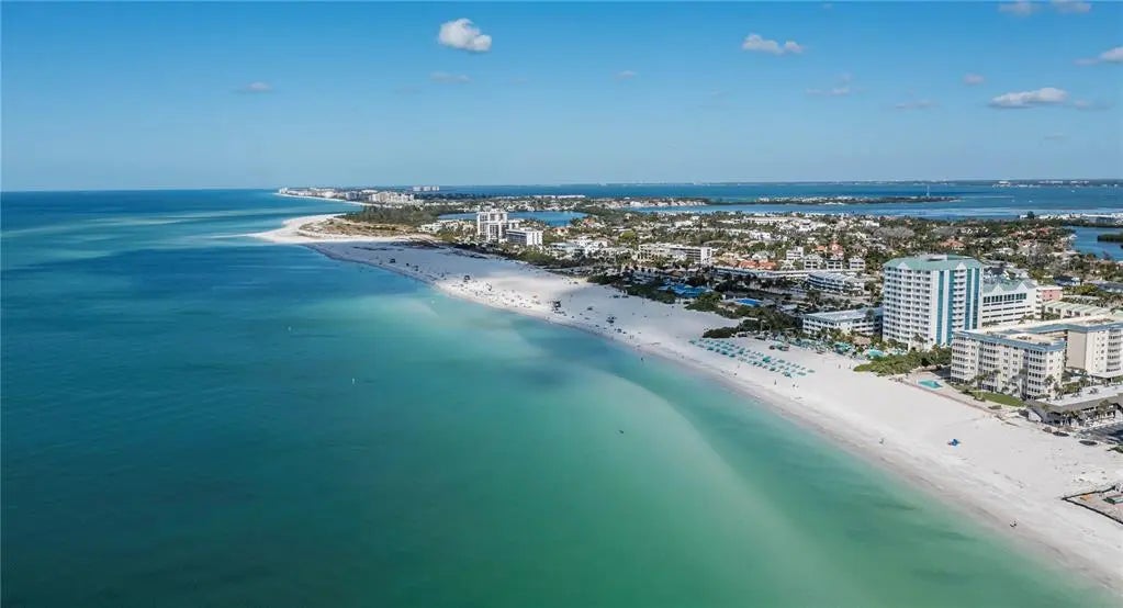 ATTENTION ALL BEACH lovers! TURNKEY FURNISHED & TASTEFULLY DECORATED 2 Bedrooms /2.5 Baths 4th floor CORNER unit at HIGHLY DESIRED LIDO TOWERS can be yours to enjoy ocean breezes with city views, bay and PARTIAL GULF VIEWS from the master bedroom and SPECTACULAR 50ft wrap-around porch BEAUTIFULLY RENOVATED! Enjoy leisurely seeing sailboats drifting by in the bay, easy to relax in style! TWO GENEROUS EN-SUITES, this is one of the LARGEST FLOOR PLANS only steps to the elevator with an EXTRA 1/2 GUEST BATHROOM adjacent to the kitchen. A chef worthy kitchen with city views boasting gorgeous granite countertops, granite backsplash, stainless appliances, modern cabinets/ decorator hardware, delightful breakfast nook, convenient pantry storage, and pass-thru to dining room and porch is ready for all your entertainment needs. MOVE-IN READY open floor plan & freshly painted with the living room and dining room having abundant natural light & living large with two sets of sliders to both front and side porches. Rich laminate flooring, NEW HURRICANE WINDOWS THROUGHOUT, plantation louvered bi-fold doors, and beautiful decorator lighting/ fans add extra value and convenience. Relax lavishly in this large master suite with panoramic 4th floor views the end unit has natural light, a spacious walk in closet, newer carpet, and a nicely upgraded ensuite bath. Guests will be impressed with the zen-like 2nd ensuite bedroom, its updated bath with brand new quartz tiled shower, designer vanity, and dimmable touch sensor LED mirror. Effortless strolling and shelling awaits on the beautiful white sands of Lido Beach for amazing sunsets or indulge in the warm gulf water as Lido Towers also has DEEDED BEACH ACCESS via Lido Surf & Sand just across the street WITH A GATED and private LOCKED ENTRANCE. This is a Secure, Gated Building with Security Cameras, Two Elevators including Outdoor Grills, Recreation Room with Sauna, Large Heated Pool, Jacuzzi plus Bicycle Rack. The community features a poolside community room for social events and parties, laundry rooms on every floor, bbq area, reserved covered parking for one, numerous guest spots, landscaped, manicured grounds, dry sauna, heated pool, jacuzzi, free WI-FI, extra storage for your beach toys and overflow, plus on-site manager. The investor-friendly rental policy allows for 1-MONTH MINIMUM RENTAL ($8,000 a month in season), 12 times per year and management offers rental services. PET FRIENDLY with one small pet allowed. Lido Towers condominium has PASSED ALL MILESTONE INSPECTIONS with no hurricane repairs, no assessments, and no HOA fee increases. NEW ROOF 2025. This amazing community has great reserves protecting your investment. If you’ve had enough of the beach and dined at the beach tiki -Ted Sperling kayak park is in the backyard and you are just minutes away from world-renowned St. Armands Circle, known for its shopping and fine dining or head over the bridge to the heart of Sarasota with its abundance of cultural venues. You’ll never lack for great things to do here with Selby Gardens, the Marina, art galleries, SRQ, UTF Mall, Barbara B.Mann plus Ringling Museum close by. Lido Beach, St. Armands Towers and Downtown Sarasota are magical sparkly sights from either one of your two balcony terraces with this special condo. DON’T DELAY & MISS OUT, this spectacular slice of paradise is perfect to start enjoying now, SCHEDULE YOUR SHOWING TODAY!