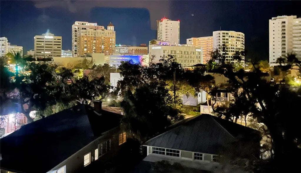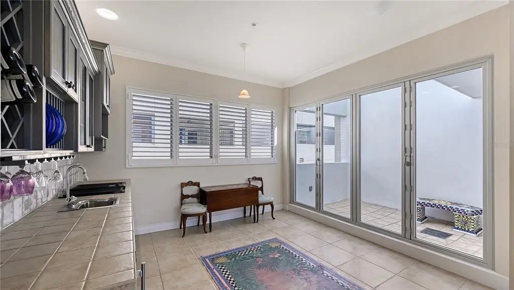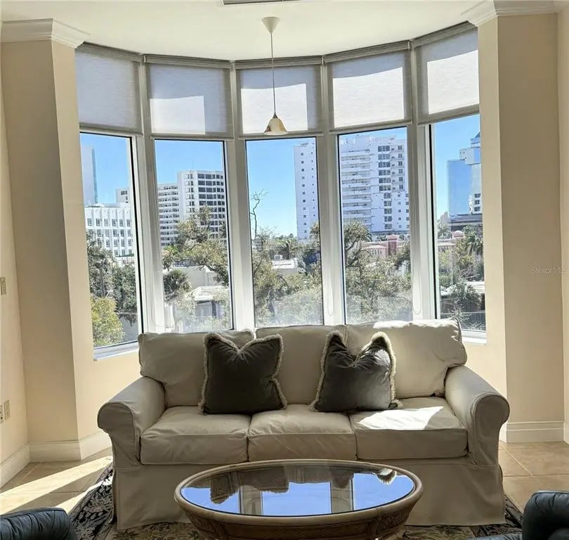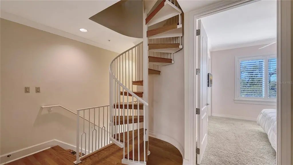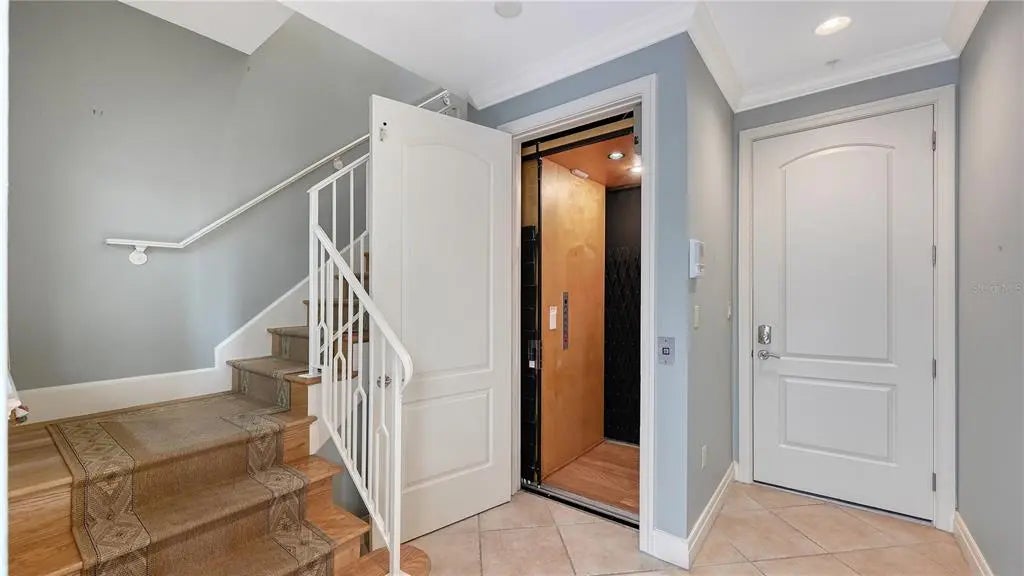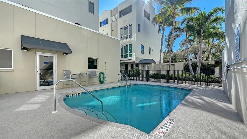 In DOWNTOWN SARASOTA – 2 BLOCKS TO EVERYTHING! This rarely available, FURNISHED 3bd/3.5 bath one-of-a-kind townhouse with ELEVATOR & 2-CAR GARAGE. It boasts 2,649 sq ft of Sarasota luxury with a total area 2,745 sq ft. Enjoy downtown city views from this custom FURNISHED 4-story move in condition townhouse. The first level hosts an attached two-car garage with plenty of overhead storage which leads into the foyer large laundry room. Guests are presented with the option of either riding your private elevator or accessing the wooden staircase as they make their way towards the 2nd level. The 2nd floor has a large open gourmet kitchen w/breakfast bar. Complemented by beautiful granite countertops & stainless-steel appliances, family room, formal dining area and half bathroom. The third level is reserved for the alluring master suite and the 2nd bedroom, both with walk-in closets and private bathrooms. Continuing up the elevator or winding spiral staircase to the 4th and final level, behold a spacious MOTHER-IN-LAW SUITE or Bonus room with kitchenette and outdoor space for BB-Q, sunning or plants. The floor to ceiling windows invites guests out to the magnificent city views. Amenities include, gated community, heated swimming pool/spa, gym with top-of-the-line equipment. Main Street is next door to indulge in the area's finest dining, shopping or catch a show. Don't miss the opportunity to live in the heart of Sarasota's vibrant downtown!