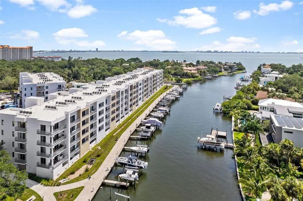 Discover waterfront living at its finest in this beautiful 2022 condo located in The Strand community in Sarasota. With direct access to the Gulf of Mexico, this residence comes with an option to purchase a deeded dock and a 15,000 lb boat lift, offering an incredible opportunity for boaters to explore the open water anytime they wish. Inside, you’ll find modern finishes throughout, including stainless steel appliances, sleek quartz countertops and a convenient in-unit washer and dryer. The primary bedroom features a spacious walk-in custom closet, while the additional den provides extra flexibility for a home office, guest space or hobby room. This condo also includes a private storage space and one dedicated garage parking spot. The amenities in The Strand elevate everyday living: enjoy the swimming pool, spa, fitness room, kayak launch and a dedicated dog park, all within this gated waterfront community. The location is truly unbeatable. Just minutes from Downtown Sarasota, renowned dining, arts, entertainment, shopping and some of Florida’s most stunning white-sand beaches. Whether you enjoy boating, beach days or the downtown lifestyle, everything is right at your fingertips. If you’re looking for luxury, convenience, water access and modern comfort, this condo truly has it all.
