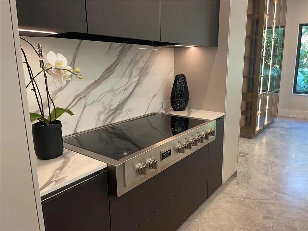 This newly built modern residence offers 3,950 sq ft of refined living space in the highly desirable area, just minutes from Downtown Sarasota, Sarasota Memorial Hospital, and Arlington Park’s recreational facilities. Designed and crafted by European architects, this home stands out for its elevated finishes, integrated storage solutions, and exceptional attention to detail. The home features four bedrooms, five bathrooms, an office, a gym/flex room, and a second-floor lounge with a glass catwalk overlooking the main living area. What sets this home apart from others, every room includes custom built cabinetry and storage, including sleek wall systems and fully built-out walk-in closets with glass fronts and LED lighting. These built-ins are architectural elements, giving the home a clean, modern, move-in-ready feel. A premium built-in central vacuum system with “Hide-A-Hose” technology adds comfort and efficiency to everyday living. The retractable hose design eliminates the need to carry or store bulky vacuum equipment. The main kitchen is designed with premium European cabinetry and equipped with high-end Fulgor Milano appliances. An oversized island and open layout create an ideal space for both everyday use and entertaining. The outdoor area is a private oasis with a modern heated pool, infinity spa and shower area, and a beautifully designed outdoor kitchen. The property also includes a rare, oversized three-car garage, offering exceptional storage and flexibility. Additional features include tall ceilings, abundant natural light, integrated lighting throughout, a modern open-concept layout, and precision workmanship seen in every part of the home. Located in one of Sarasota’s most central and desirable areas, you are minutes from downtown, shopping, restaurants, parks, and the hospital. This is a unique opportunity to own a modern European home with features rarely available in Sarasota. Schedule your private showing—this home will not last.