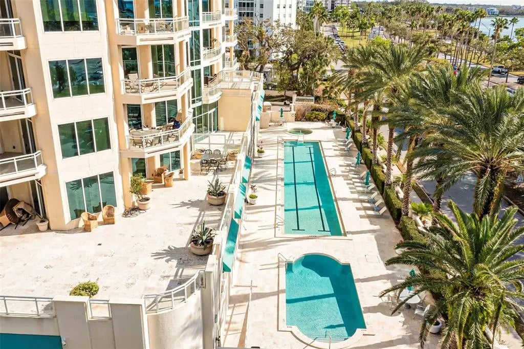 Where Luxury Meets the Bay — Palm Avenue Perfection Step into a life of sophistication, serenity, and sunlit luxury on coveted Palm Avenue, where every day feels like a private escape. This corner waterfront residence delivers the ultimate Sarasota lifestyle with 2 bedrooms, 2 bathrooms, and a versatile den across 2,075 square feet of refined living space. Every inch is designed for those who expect more. Inside, gleaming hardwood floors lead you to an open-concept living area that’s made for entertaining and unwinding in style. The chef’s kitchen, outfitted with top-tier Jenn-Air and Bosch appliances, is both stunning and functional—built for the art of cooking and the joy of conversation. The primary suite is a statement of luxury, featuring floor-to-ceiling windows that fill the room with morning light and breathtaking city views. This 600-square-foot retreat includes an oversized custom closet and electric shades for instant privacy at the touch of a button. Step onto your spacious private balcony and let Sarasota Bay steal your breath—sunsets that melt into the horizon, city lights dancing on the water, and a front-row seat to the Fourth of July fireworks right from your home. This residence comes with two secure parking spaces, two storage lockers, and exclusive access to resort-style amenities: two pools including a heated lap pool, a fully equipped fitness center, guest suites, and a pet-friendly community for your four-legged companion. And the best part? You’re just steps from Sarasota’s best dining, boutiques, galleries, and theaters—the perfect balance of luxury, leisure, and lifestyle. This isn’t just a condo. It’s a front-row seat to Sarasota’s most beautiful moments—and it’s waiting for you.