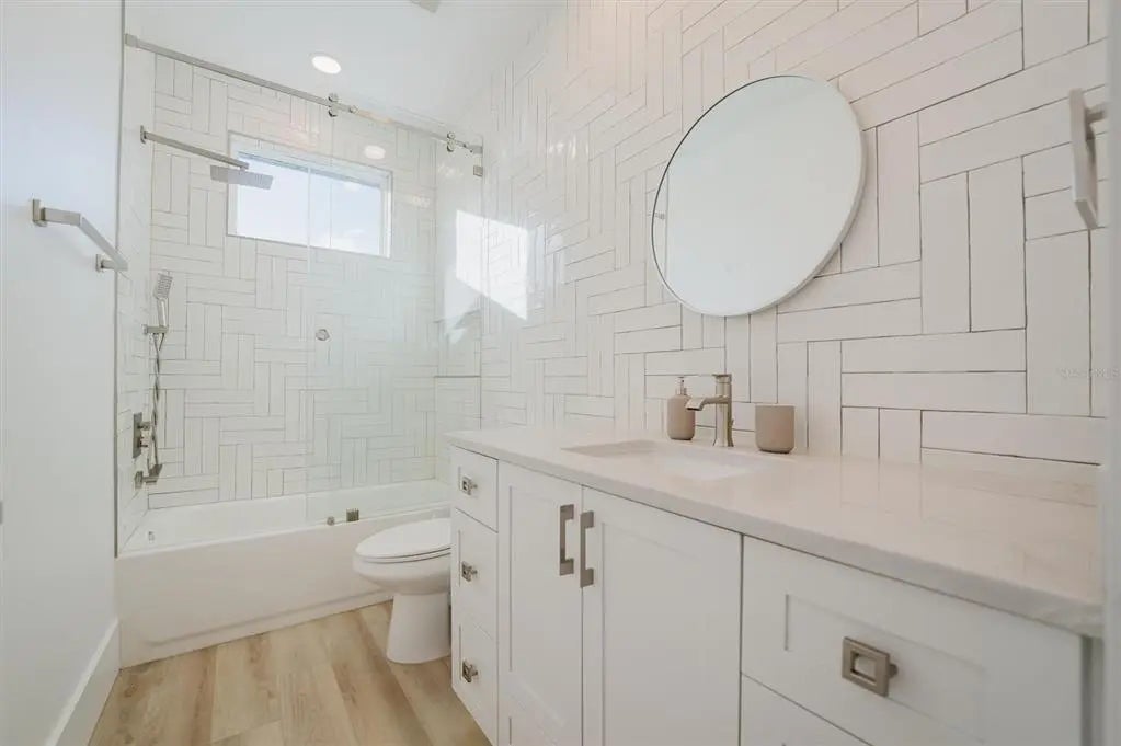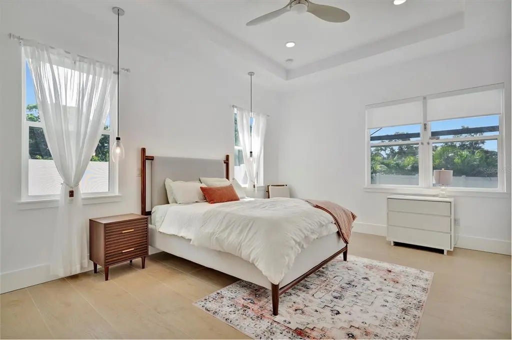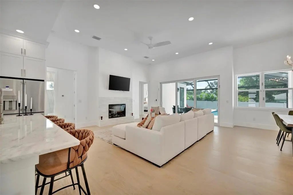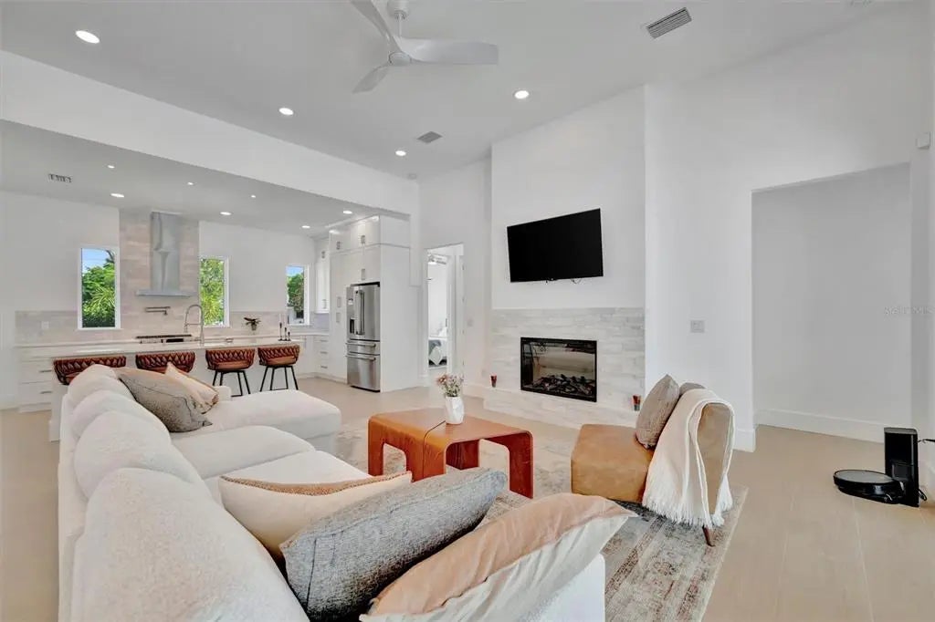 Welcome to this exceptional home built in 2024, located in the highly sought-after Indian Beach–Sapphire Shores neighborhood of Sarasota. This thoughtfully designed residence offers 5 bedrooms and 4 full bathrooms, blending modern elegance with relaxed coastal living. The primary suite is conveniently situated on the first floor, providing comfort and privacy, while a first-floor guest suite is ideal for visitors or multigenerational living. Upstairs, two generously sized bedrooms are connected by a versatile loft, creating a shared flex space perfect for a media lounge, home office, or play area. An open-concept floor plan filled with abundant natural light creates a seamless space for everyday living and entertaining. Step outside to your private outdoor oasis, featuring a heated pool and spa, fully screened for year-round enjoyment. The expansive lanai is perfect for outdoor dining, entertaining, or unwinding poolside with family and friends. Ideally located just 3 miles from Downtown Sarasota, 5 miles from St. Armands Circle and Lido Beach, and 10 miles from the world-renowned Siesta Key Beach. Enjoy easy access to premier dining, shopping, and cultural attractions, or take a short 5-minute walk to the Bayfront to enjoy breathtaking sunsets. Sarasota-Bradenton International Airport is only a short drive away, making travel effortless. This 2024-built home combines modern design, a prime location, and seamless indoor-outdoor Florida living—perfect as a primary residence, vacation retreat, or investment property.