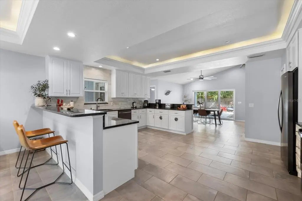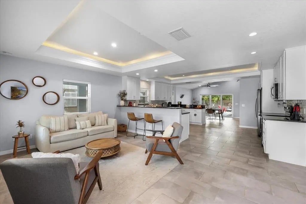 Stunning home rebuilt in 2017 with 3-bedroom & 2-bathroom It features updated plumbing, electrical systems (including a new meter), a new AC system (complete with mechanics and ductwork), a durable metal roof with new trusses, and modern windows. This single-story gem offers 1,513 square feet of thoughtfully designed living space highlighted by tray ceilings with integrated lighting, a vaulted ceiling in the living room and beautiful tile flooring throughout, perfect for modern comfort and functionality. The open-concept layout seamlessly connects the living room, dining area, and kitchen, creating an inviting atmosphere for entertaining and family gatherings. Enhancing the indoor-outdoor living experience, an 8-foot sliding glass door leads to the covered porch and a large fenced in patio. The kitchen is a chef’s dream with sleek countertops, stylish cabinetry, and Whirlpool stainless steal appliances, providing plenty of counter space and storage options. The bedrooms are generously sized, filled with natural light, and provide cozy retreats. The master suite features a modern en-suite bathroom with dual sinks and a walk-in shower. Both bathrooms are tastefully designed with contemporary fixtures and finishes.The spacious backyard offers plenty of room for a pool, making it an ideal retreat. No HOA. Home can be sold furnished or unfurnished. Strong investment potential in a very favorable Airbnb / rental environment perfect for the buyers who are looking for passive income. It's proximity to downtown Sarasota, St. Armands, airport and the Lido/Longboat Keys ensures that leisure and convenience are always within reach. This property is not just a home; it's a lifestyle waiting to be embraced.