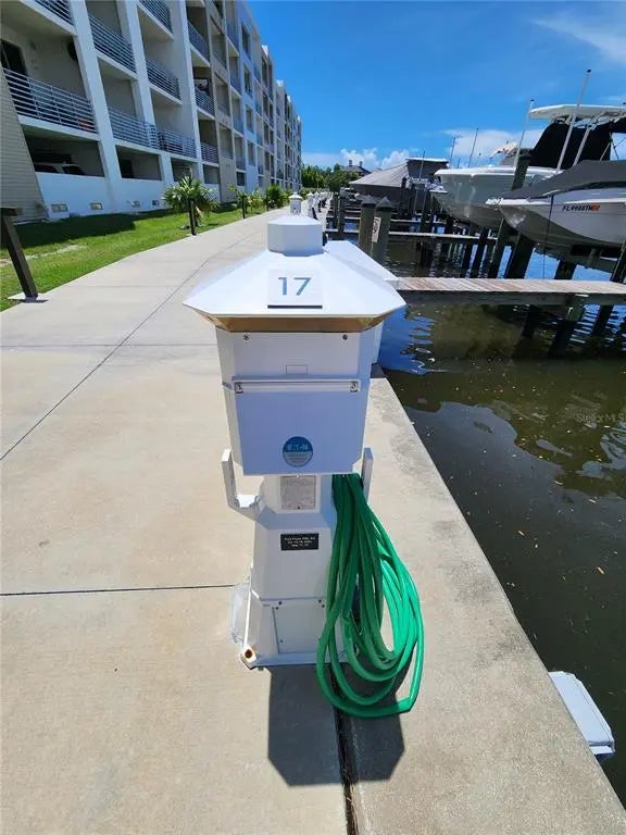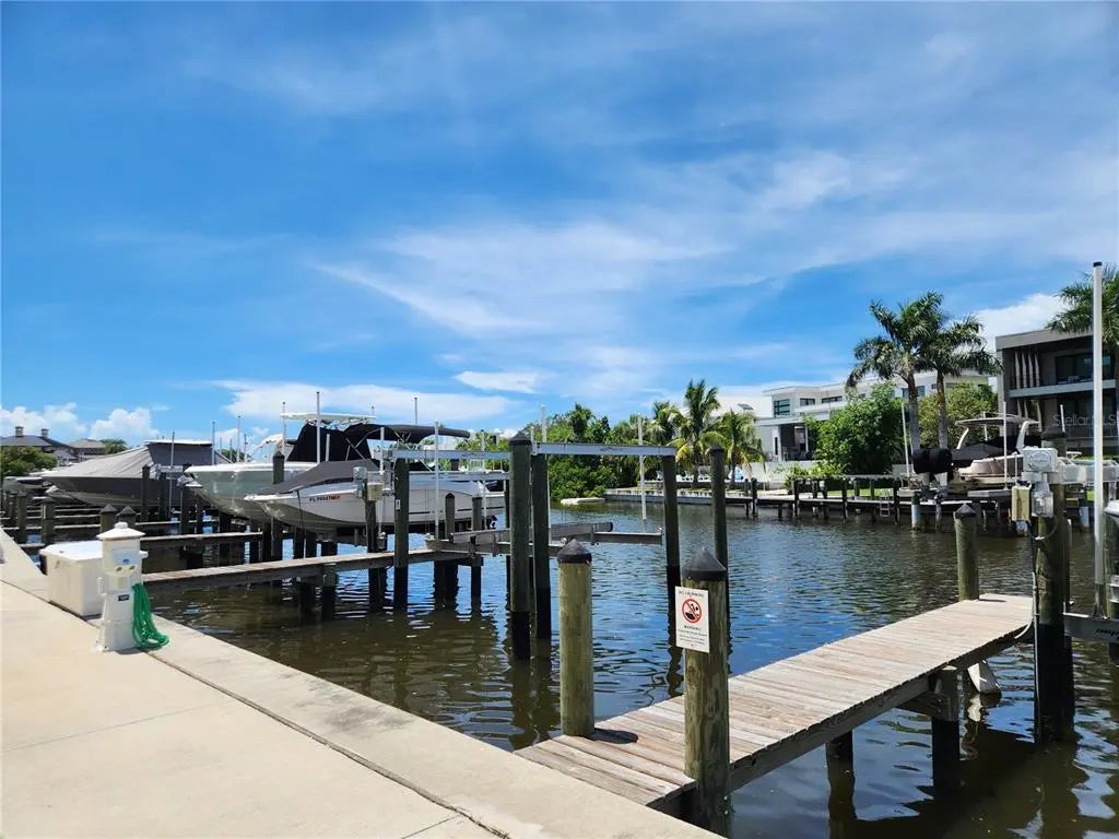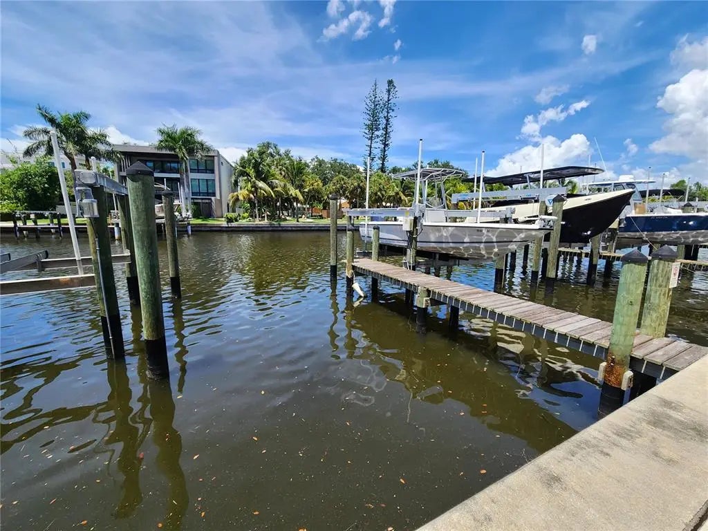Welcome Boaters! This is your opportunity to own a top floor unit with peekaboo bay views and your own private dock at The Strand! Unit 507 offers the rare opportunity of an included deeded 32.5ft private dock with water and electric. After boating you can enjoy a beautiful sunset on your covered terrace with peekaboo bay and pool views. The large kitchen quartz counters and open floor plan make this condo great for entertaining. The primary suite offers a large walk-in shower and walk-in closet. The large den has a closet, making it a perfect bedroom for guests. The Strand offers a private dog park, floating kayak launch, pool and spa, gym, fire pit, and gas grills. All of this is located a short distance to 3 waterfront public parks, a 2 minute drive to downtown for weekend farmer's markets or an evening opera show. Lido Key beach is only 5 miles and the world famous Siesta Key is only 8 miles from your private garage parking spot.