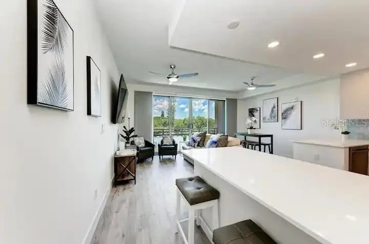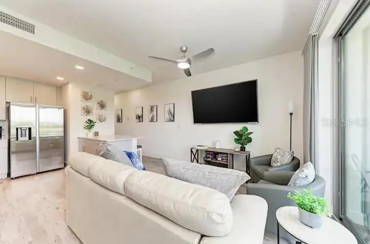 Truly Turn Key Luxury at its finest! This beautiful condo comes fully furnished with everything you need to move right in and enjoy the scenery. The Strand of Sarasota is a new luxurious condo, with breathtaking water views and direct access to Sarasota Bay. This gated community includes five-star amenities, and fantastic proximity to Downtown Sarasota and beaches! Located on the 4th floor, the residence includes an open living and dining area, a master suite with king bed and ensuite bath, a den with Murphy Bed, and a 2nd full bathroom. The unit contains a Fully stocked Kitchen, as well as a Sleeper Sofa in living room for additional guests. The In-unit laundry contains a full size washer and dryer for extra convenience. Additional items include a Nest thermostat and Keyless entry lock. Many basic items are included for your convenience, along with high end luxury linens, smart TVs in all rooms. There is 1 assigned covered parking spot on bottom level with elevator access to the 4th floor as well as extra storage unit. Additional parking is available in any non-numbered spots on the property. The resort style amenities include heated pool/spa, gym, gas fire pit and grill, electric car charging, dog park, boardwalk, and kayak launch. You can rent monthly or weekly, which is a rare find in downtown Sarasota. Whether you're looking to live here full time, part time or as an investment option, don’t miss a chance to take advantage of this unique opportunity.