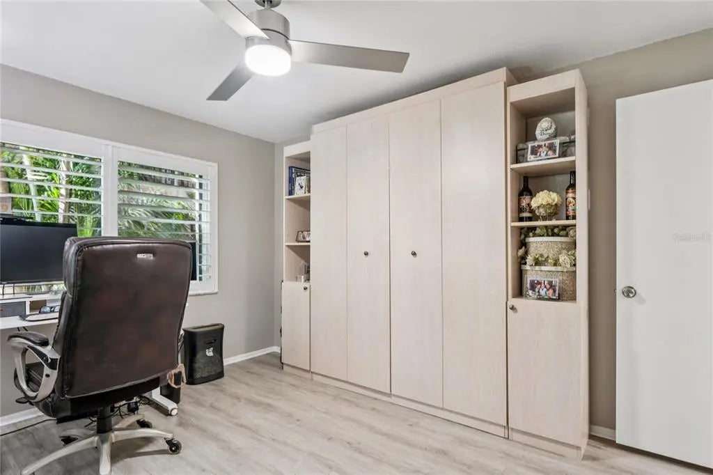 - Interior FeaturesCeiling Fan(s), Open Floorplan, Solid Surface Counters, Solid Wood Cabinets, Split Bedroom, Walk-In Closet(s)