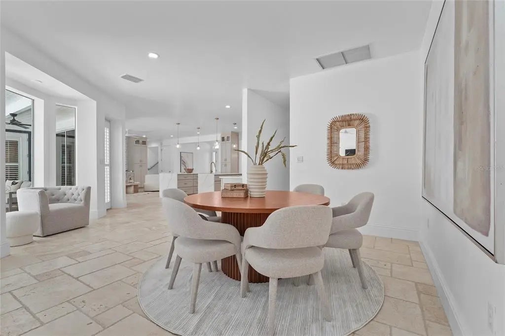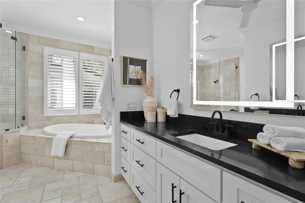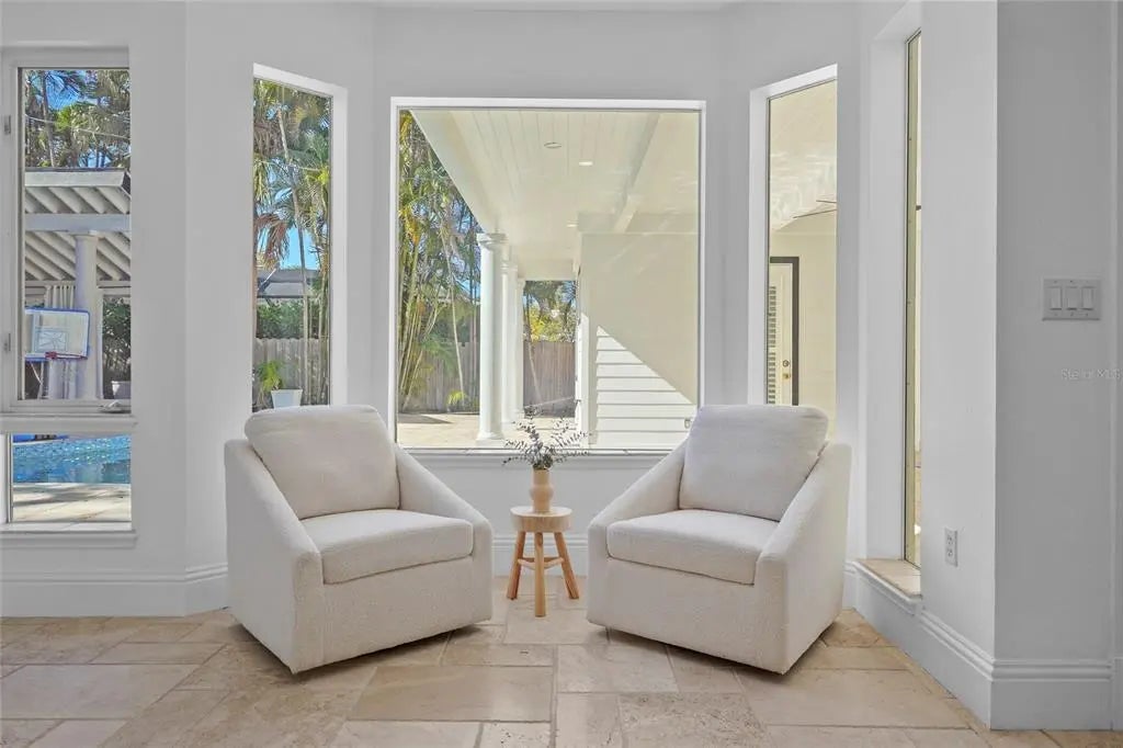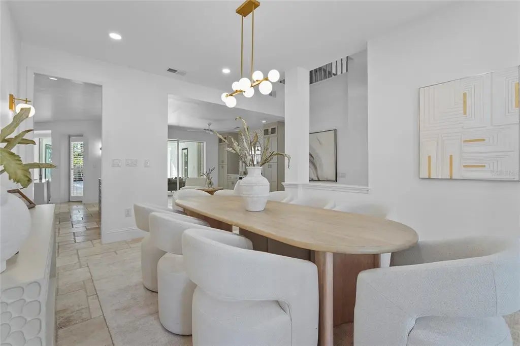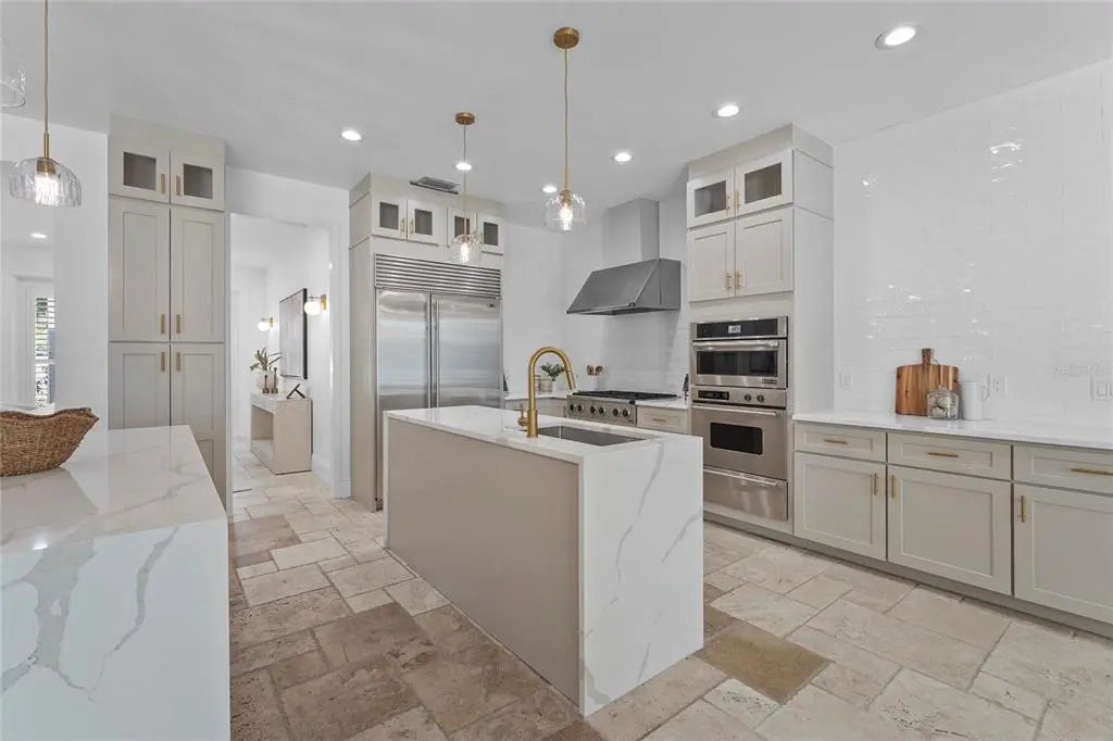 Welcome to this stunning 5-bedroom, 5-bathroom home ideally located near the Hillview District, downtown Sarasota, and just minutes from to Southside Elementary School. Enjoy the best of “West of the Trail” living in this beautifully updated residence that blends timeless architectural charm with modern luxury. The home features a brand-new gourmet kitchen highlighted by a striking double island with quartz waterfall countertops, stainless steel appliances including a gas cooktop and hood, a wine refrigerator, and a custom buffet offering abundant storage. A true formal dining room provides the perfect setting for entertaining. Original travertine tile floors flow throughout the expansive first floor, leading to the primary suite with a large walk-in closet and a spa-inspired ensuite with direct access to the pool deck. The split floor plan also includes a private guest suite with its own ensuite bath. Floor-to-ceiling windows fill the home with natural light and showcase views of the exceptional backyard. Upstairs, you’ll find three additional bedrooms and two fully updated bathrooms. The backyard is truly a rare find—a private oasis featuring a spacious pool, covered lanai, pergola, outdoor shower, storage shed, and full fencing. With its generous size and proximity to downtown, this outdoor space is perfect for relaxing, entertaining, or creating lasting memories. This exceptional home offers comfort, elegance, and an unbeatable location—an opportunity not to be missed.