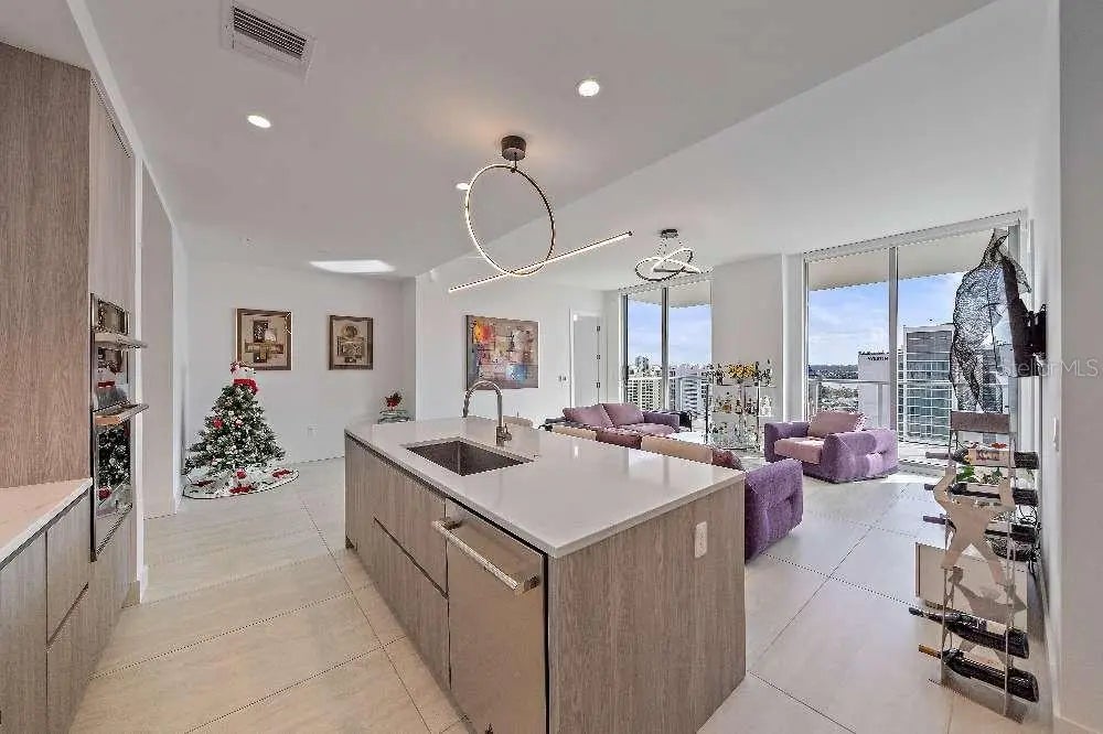 This is a condo that gets the details right — the ones that actually matter once you’re living there. From the 17th floor, you’re high enough to clear neighboring buildings, including the Hyatt, which means open views, real sunsets, and clear sightlines over the marina. Fireworks reflect off the water during events, and the evenings feel noticeably quieter than many nearby residences. One of the underrated advantages of this unit is what you don’t hear. Unlike other condos in the area, it’s positioned away from the loud rooftop and mechanical systems of neighboring buildings, including the Ritz-Carlton. The result is a space that feels calm, even though you’re in the middle of everything. Inside, the layout is clean and functional, with motorized shades in the main living areas and bedrooms to make privacy and light effortless. The kitchen has been thoughtfully upgraded with a custom backsplash and a built-in wine fridge — practical improvements that you use every day. The condo also includes two dedicated parking spaces, a meaningful advantage in this part of downtown where many units only have one. Location-wise, it’s hard to beat. You’re walking distance to downtown Sarasota restaurants, steps from the waterfront, close to the marina, and an easy walk to the bridge. The surrounding neighborhood — anchored by the Ritz-Carlton Residences — adds a level of stability and prestige that carries through the entire area. This is a place for someone who wants the benefits of downtown living without the tradeoffs that usually come with it.