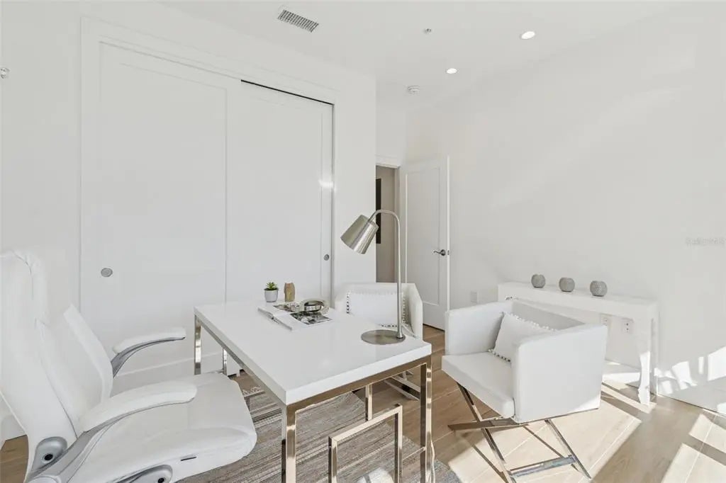 Live grounded. Create freely. Canvas RADD introduces a single-level, 3-bedroom, 3-bath live/work residence set at street level in Sarasota’s Rosemary Arts and Design District, designed for flexibility, presence, and creative flow in one of the city’s most dynamic neighborhoods. The layout unfolds across one generous level with high ceilings and expansive windows that bring in natural light and neighborhood energy, supporting a live/work configuration ideal for studios, offices, client-facing spaces, or simply room to spread out. A private landscaped yard and courtyard extend the home outdoors, offering a rare urban luxury for morning routines, informal meetings, pets, and evenings under the lights while remaining connected to the city. The architecture is sharp and purposeful, defined by clean lines, modern materials, and interiors that feel collected rather than conventional, complemented by the convenience of a private garage and effortless ground-floor access. Residents also enjoy access to curated shared amenities including a fitness studio for daily resets and a conference room for focused work, collaboration, or creative sessions without leaving the block. From the front door, Sarasota opens up quickly with walkable access to neighborhood favorites like Project Coffee, Shack Yoga, the Sarasota Farmers Market, and local dining and shopping throughout the Rosemary District, along with seamless access to the arts and culture of Downtown Sarasota including live performances, concerts, galleries, and theaters, plus easy drives to St. Armands Circle and nearby Gulf beaches.