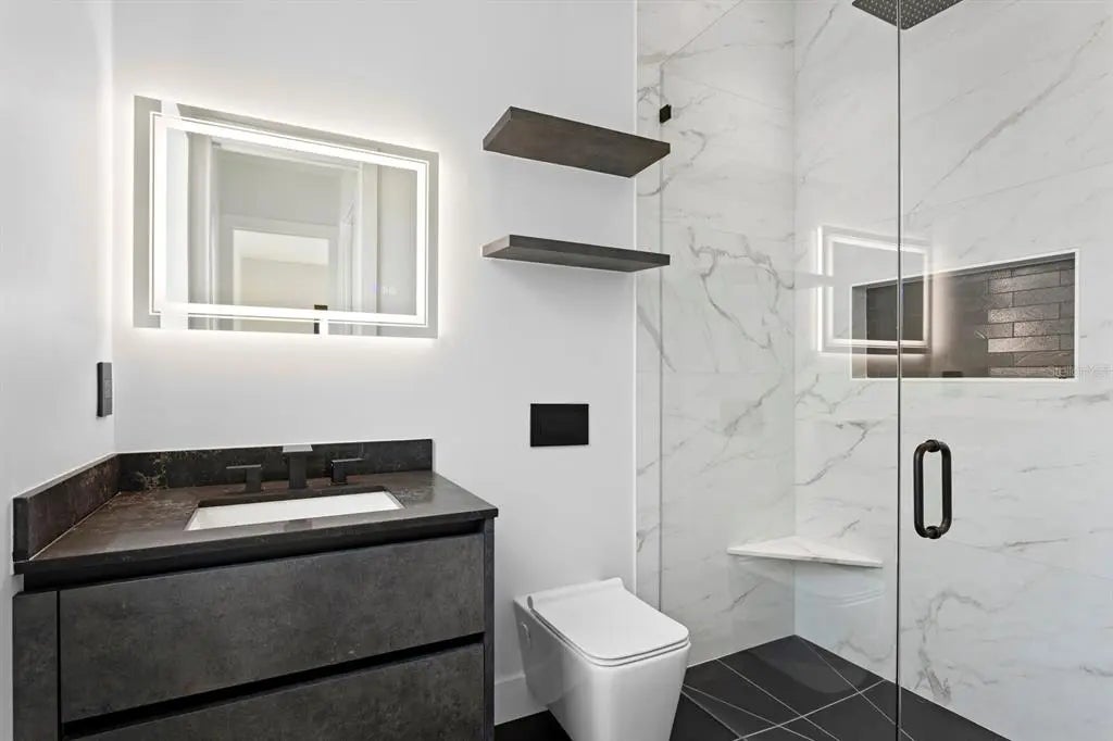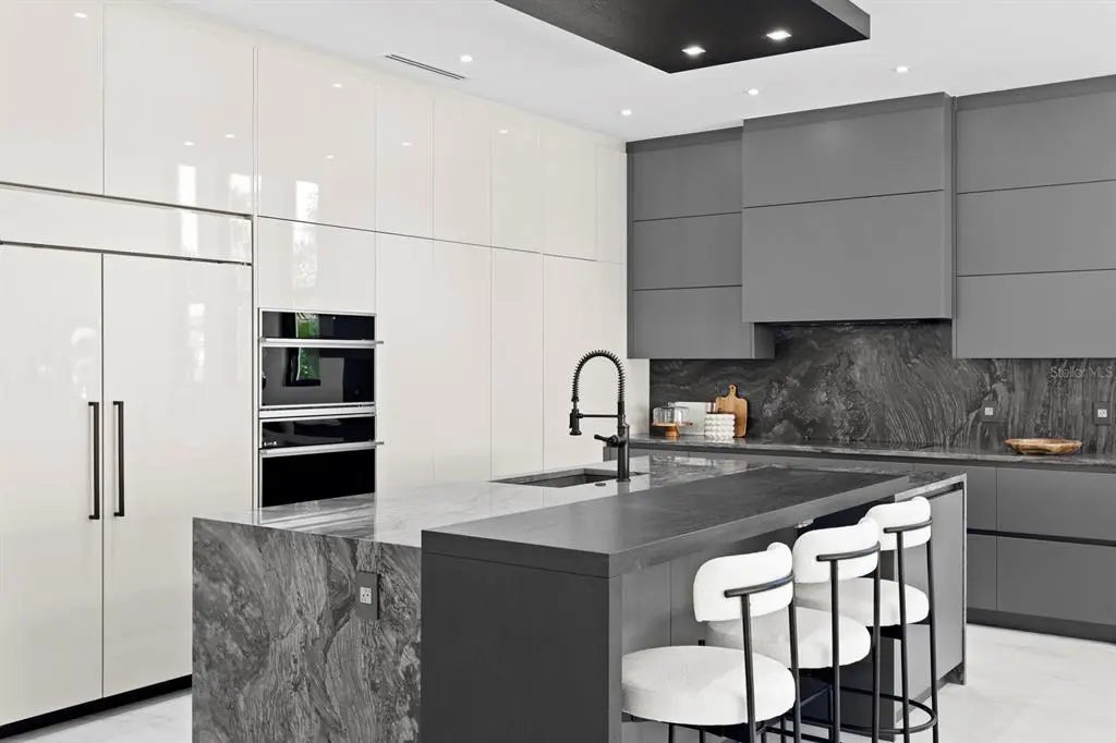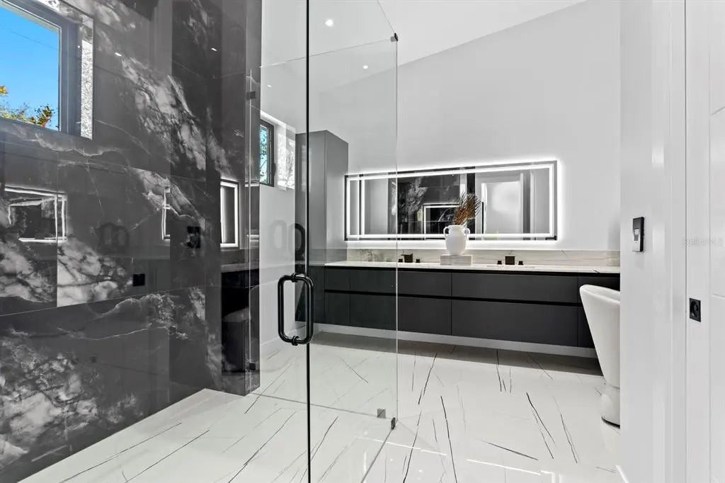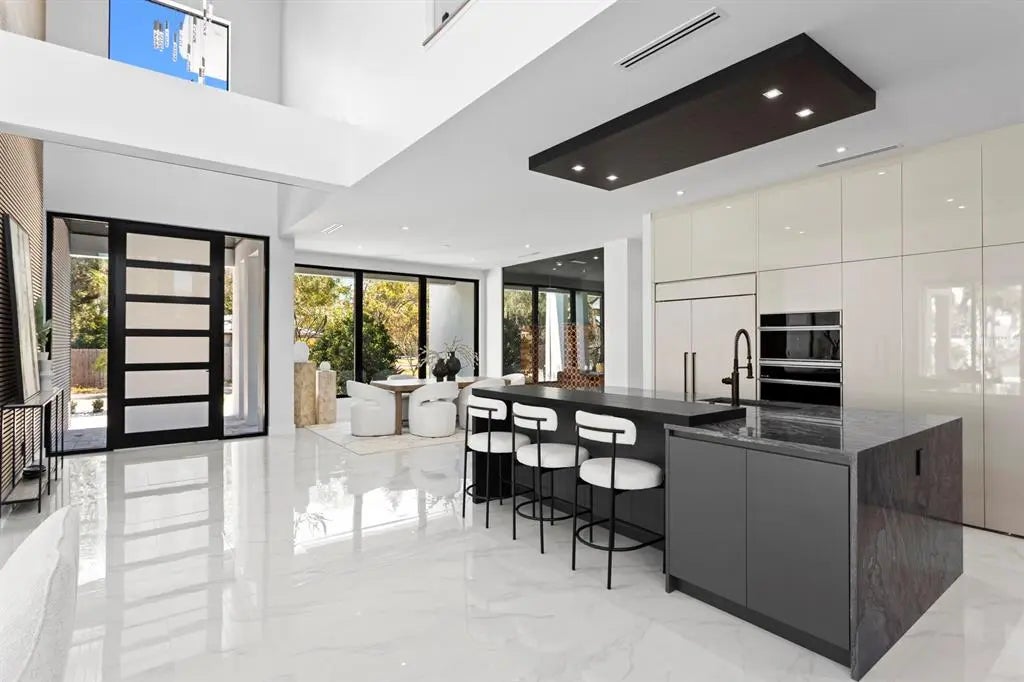 2089 Arlington Street, where architecture meets light, space, and coastal elegance, this newly constructed contemporary residence offers 4,231 square feet of living space and 5,284 total square feet, thoughtfully designed with architectural precision and warm minimalism. Completed in January 2026, this striking two-story home sits on a rare double corner lot and features 5 bedrooms and 6 bathrooms, delivering both scale and sophistication. The open-concept interior is defined by dramatic 22-foot ceilings, expansive custom windows and doors, and an abundance of natural light throughout. The main level is anchored by a statement chef’s kitchen imported from Italy, showcasing custom cabinetry, luxury built-in appliances, a Sub-Zero refrigerator, premium hardware, and top-quality London Fog granite countertops. A concealed secondary kitchen provides additional functionality and discretion, ideal for entertaining and catered events. The primary suite is conveniently located on the ground floor, offering a private retreat with serene views and a spa-inspired bath. Additional bedrooms are generously sized, each with access to a full bathroom. A custom glass wine room adds a refined architectural focal point, while a loft-style family/media lounge on the second level overlooks the main living area, enhancing the home’s open, airy feel. Designed for seamless indoor–outdoor living, oversized sliding doors open to a private resort-style setting with a custom pool and spa, covered terrace, and enhanced landscaping. Architectural exterior lighting highlights the home’s clean lines and modern façade after sunset. Quality and performance are paramount: both levels are constructed of solid concrete block, and three independent HVAC systems serve the ground floor, primary suite, and second floor for optimal comfort and efficiency. Additional features include a private elevator, and all custom-made windows, doors, and cabinetry throughout—evidence of meticulous attention to detail in every finish. Ideally located for effortless travel and coastal lifestyle enjoyment, this home is approximately 12–15 minutes from Sarasota–Bradenton International Airport, about 1 hour 10 minutes from Tampa International Airport, 10–15 minutes to Lido Key, and about 15 minutes to Siesta Key, world-renowned for powder-white sand and Gulf sunsets. Situated outside of a flood zone, this exceptional residence presents a rare opportunity to own a custom-built contemporary home where design, craftsmanship, location, and lifestyle converge.